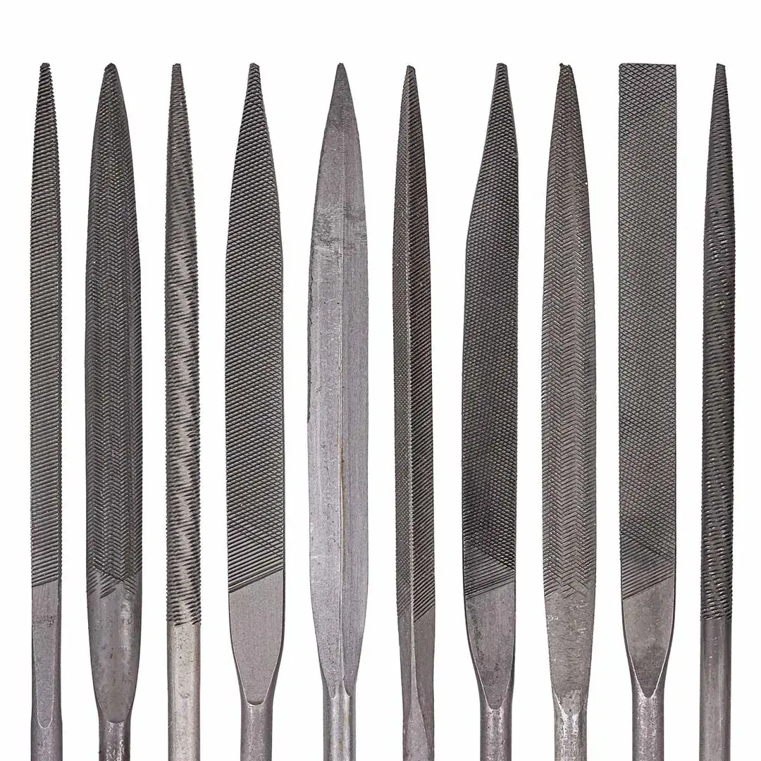 Набор надфилей разнопрофильных предназначены для тонкого опиливания, зачистки поверхностей, доводки небольших и совсем крохотных деталей. В наборе 10 предметов. Длина 140 мм, диаметр 3 мм. Надфиль - это мини напильник, которым выполняют тонкую механическую обработку деталей из различных материалов, где с помощью обычного напильника это сделать проблематично. Абразивный инструмент, маленький алмазный напильник предназначен для работ с обработкой металла, дерева, пластмасс и твердых материалов. Набор алмазных надфилей имеет круглые, плоские и квадратные наконечники, что обеспечивает всестороннее применение: в металлообработке, ювелирном деле, моделировании и других областях, где требуется высокая степень точности и детализации.