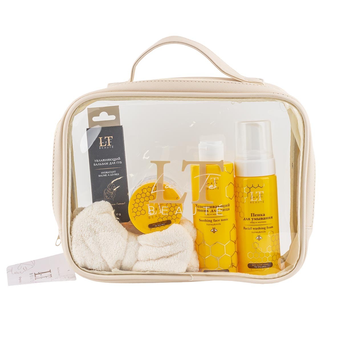 Набор по уходу за лицом для сухой кожи(тоник 1190,крем 1244,пенка 1251,бальзам 1756,повязка -бант белая,сумка-органайзер) La and Te beaute LT-CB8