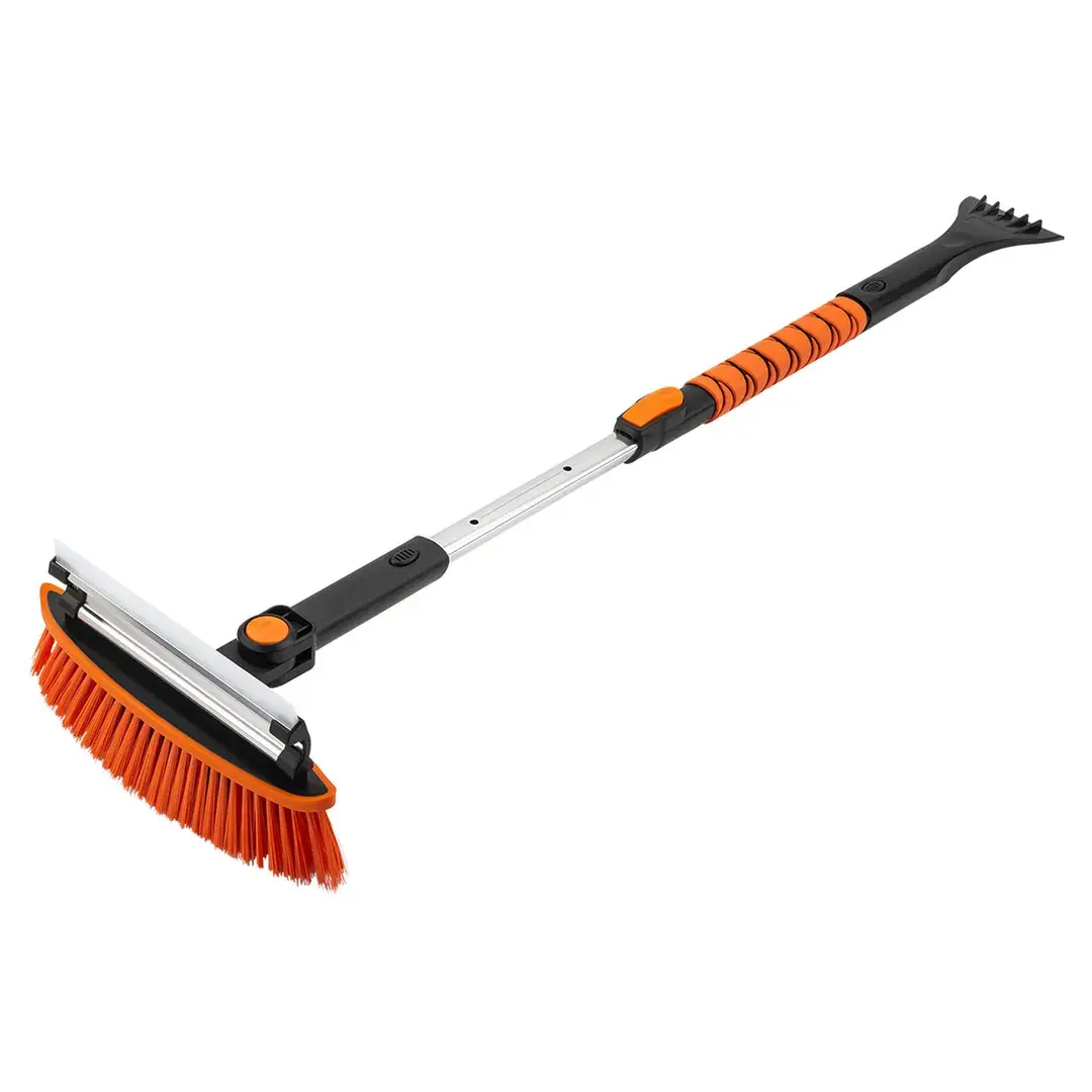 Набор предназначен для эффективной уборки снега и льда и включает щетку со скребком на шарнире, телескопический алюминиевый черенок с длиной регулировки от 43 до 62 см, скребок для наледи, лопату с регулируемой длиной от 79 до 98 см, а также ручку. Общая длина щетки со скребком и черенком составляет от 81 до 100 см, а у лопаты — от 79 до 98 см, что обеспечивает удобство и гибкость при работе в различных условиях, позволяя легко счищать снег, удалять лед и собирать воду.