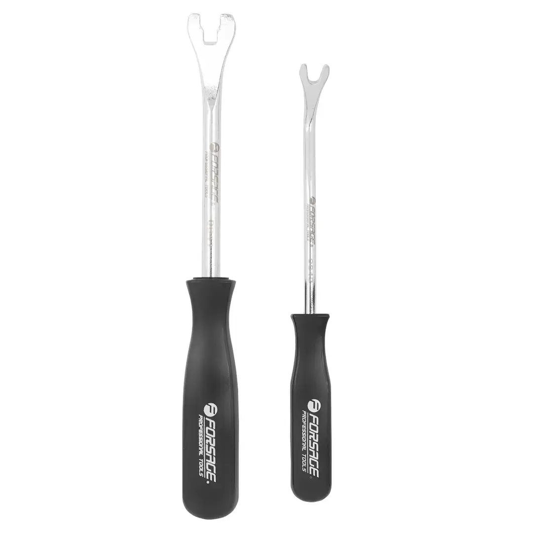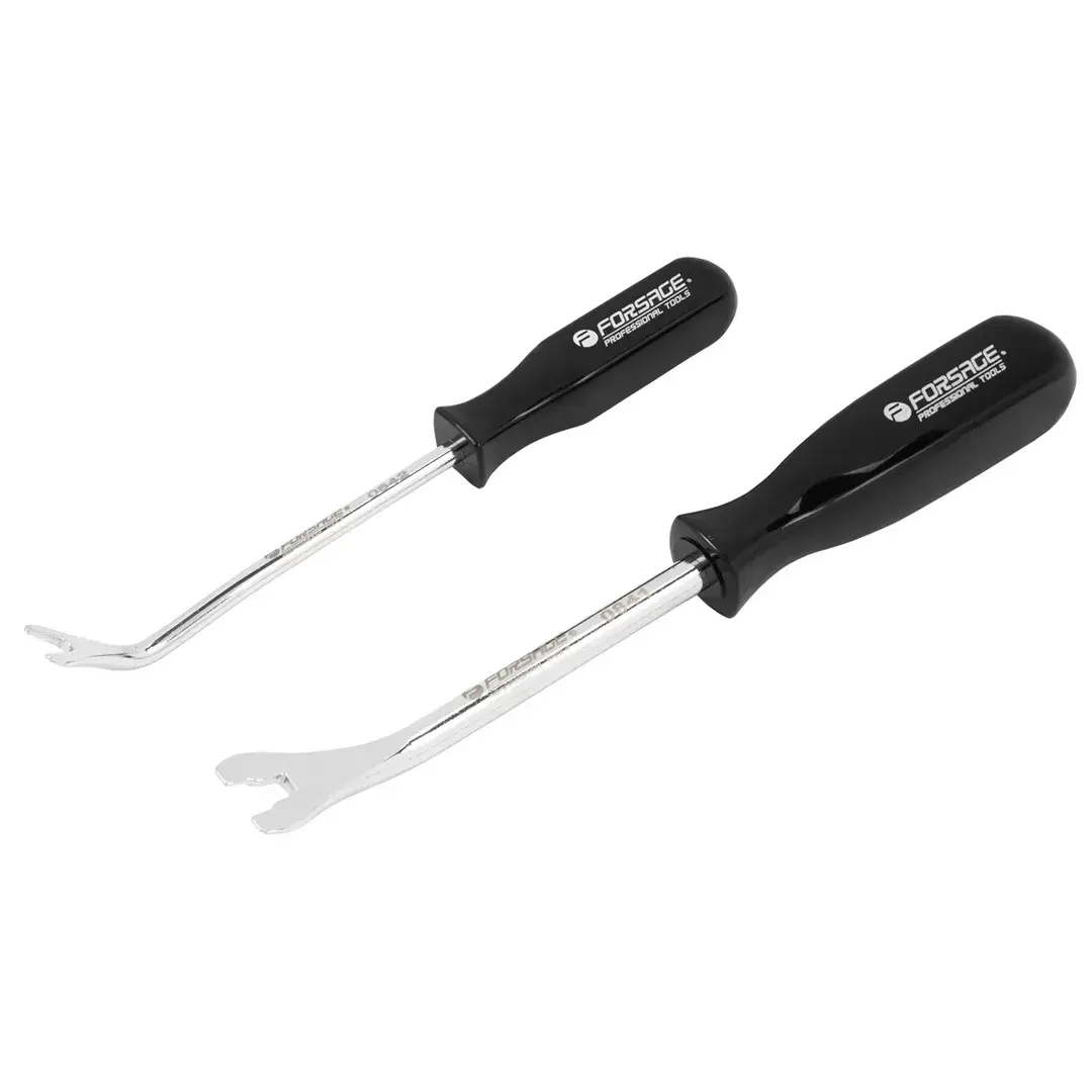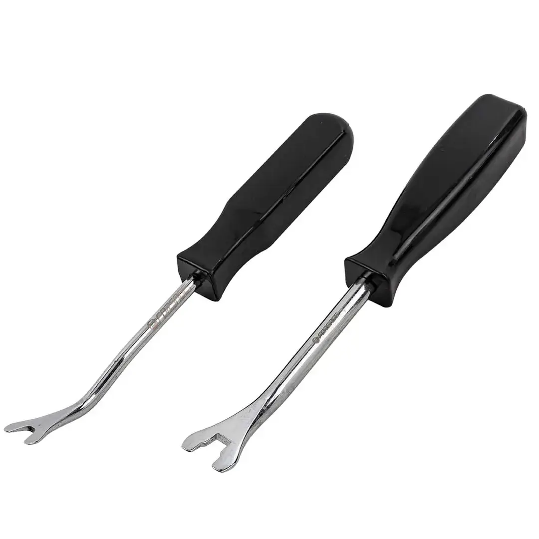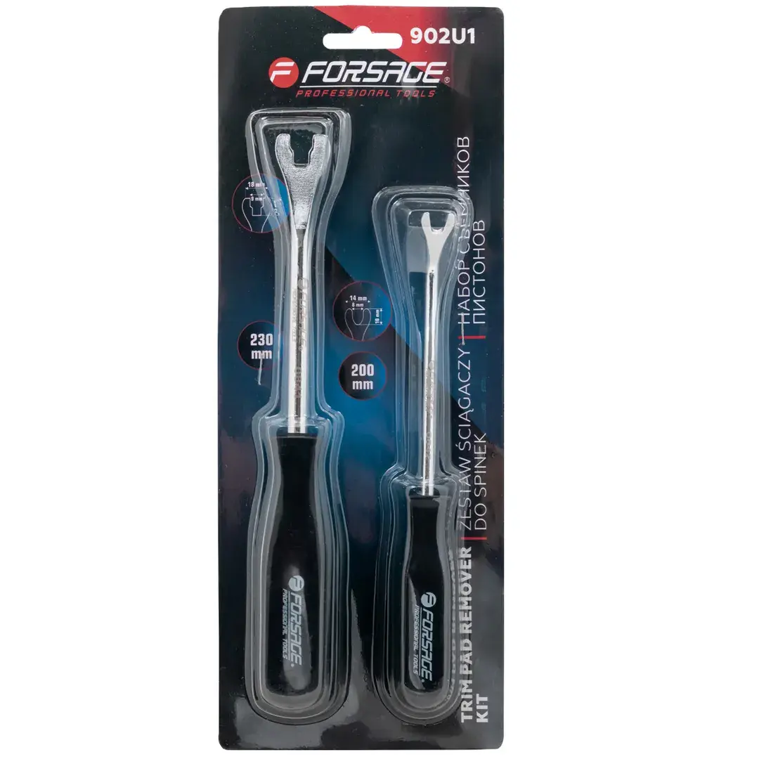Набор из 2 съемников для пистонов "вилка"- незаменимый инструмент для ремонта автомобилей и мотоциклов. Съемники клипс изготовлены из высококачественной стали, обеспечивающей долговечность и надежность работы. В комплект входят два съемника различных размеров: 200 мм и 230 мм, что позволяет использовать их для различных моделей транспортных средств. Эти съемники легко устанавливаются на пистон и позволяют быстро и безопасно выполнять замену тормозных колодок и других деталей.