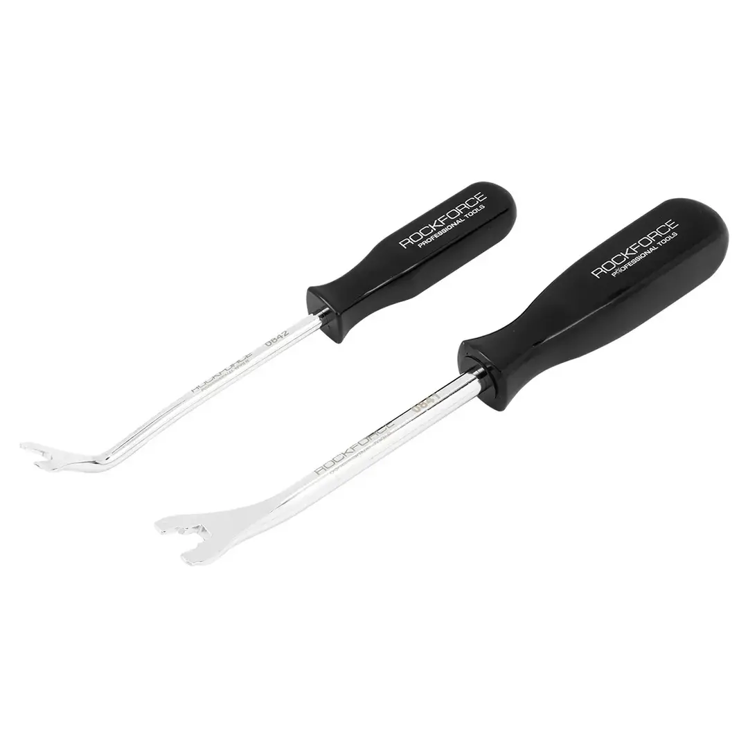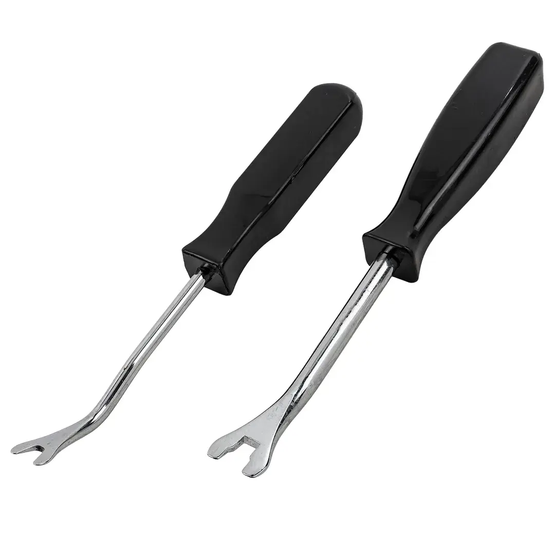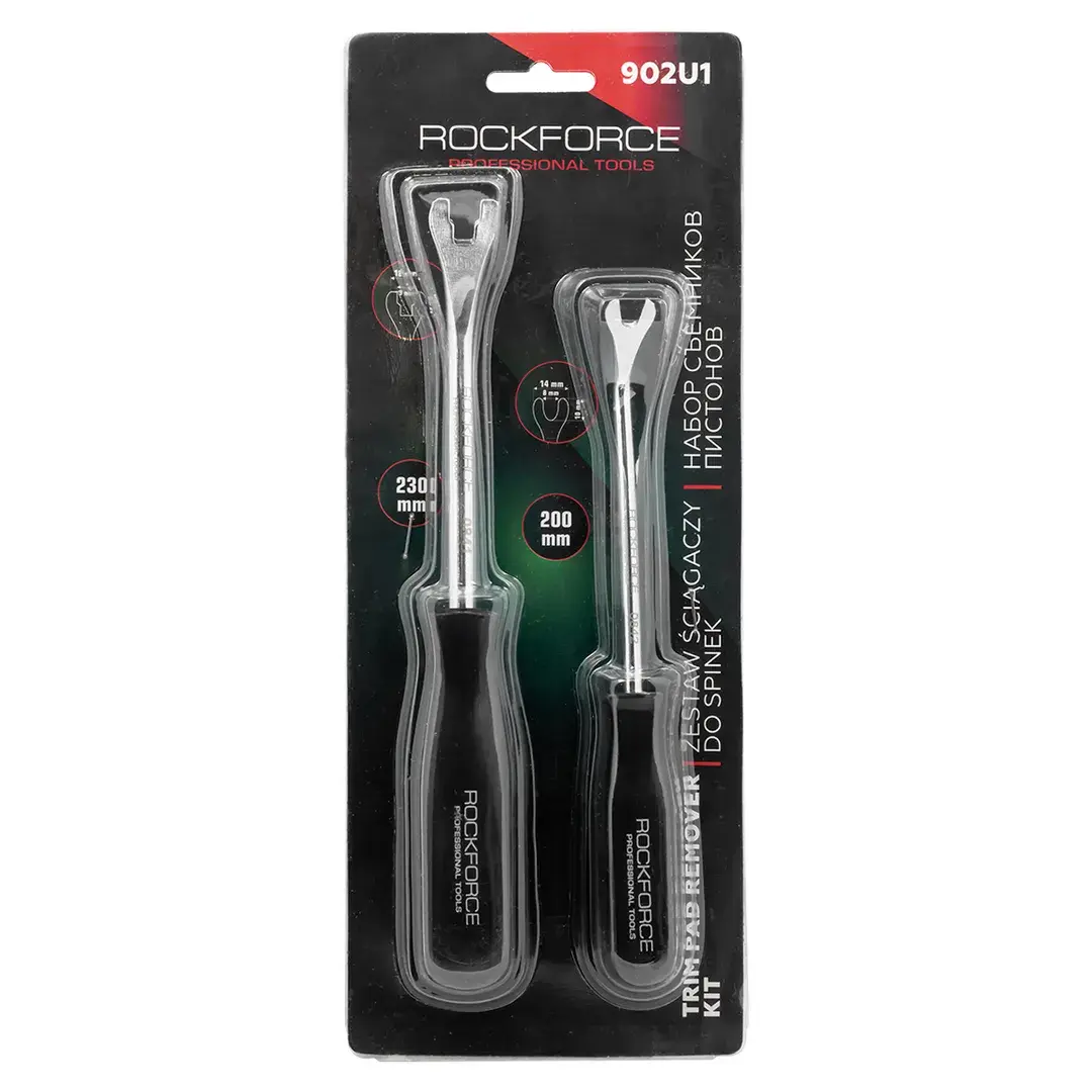 Набор из 2 съемников для пистонов "вилка"- незаменимый инструмент для ремонта автомобилей. Съемники изготовлены из высококачественной стали, обеспечивающей долговечность и надежность работы. В комплект входят два съемника различных размеров: 200 и 230мм, что позволяет использовать их для различных моделей транспортных средств. Эти съемники клипс легко устанавливаются на пистоны и позволяют быстро и безопасно их снимать