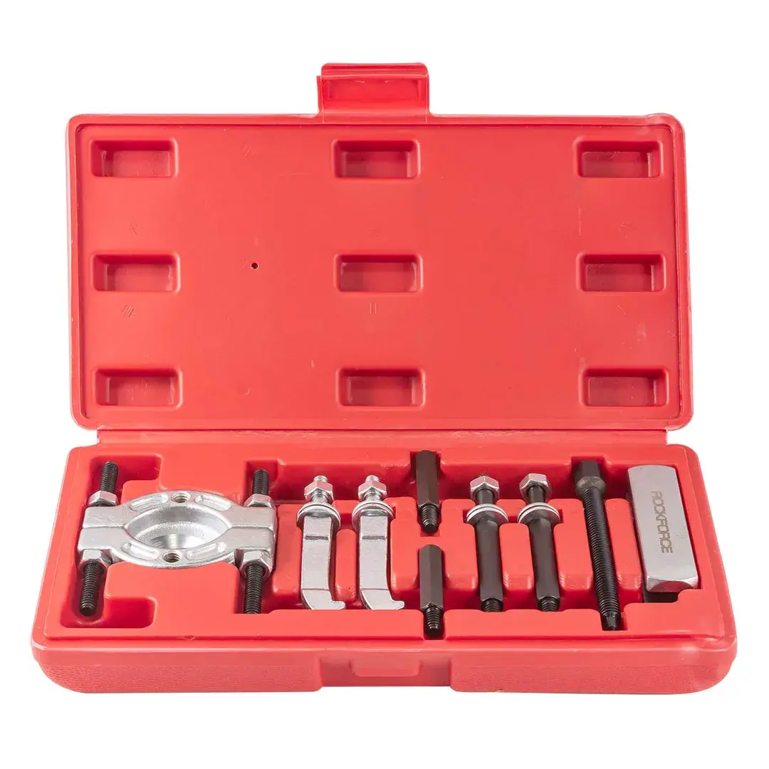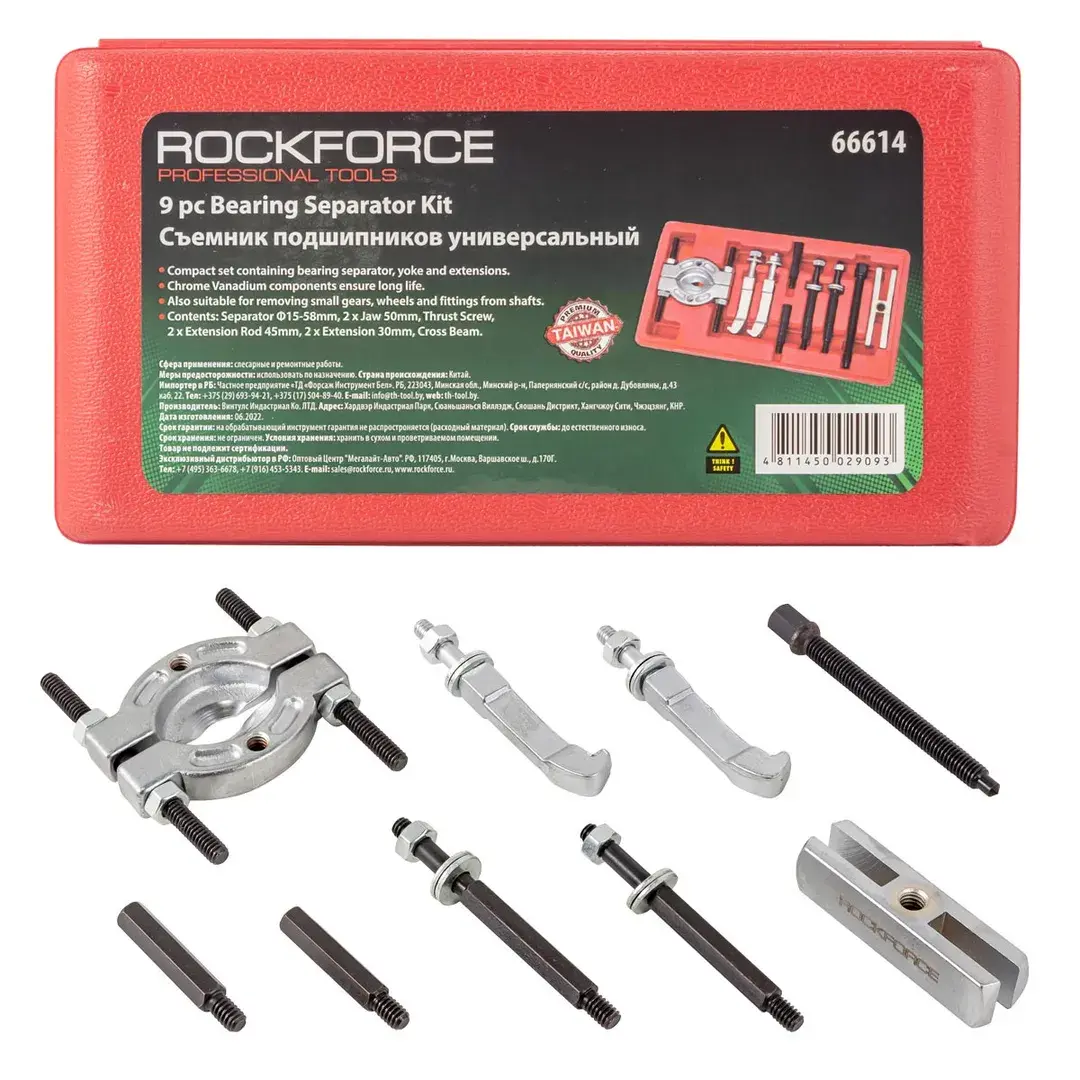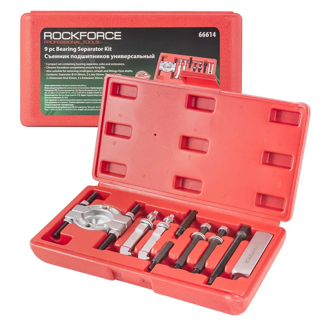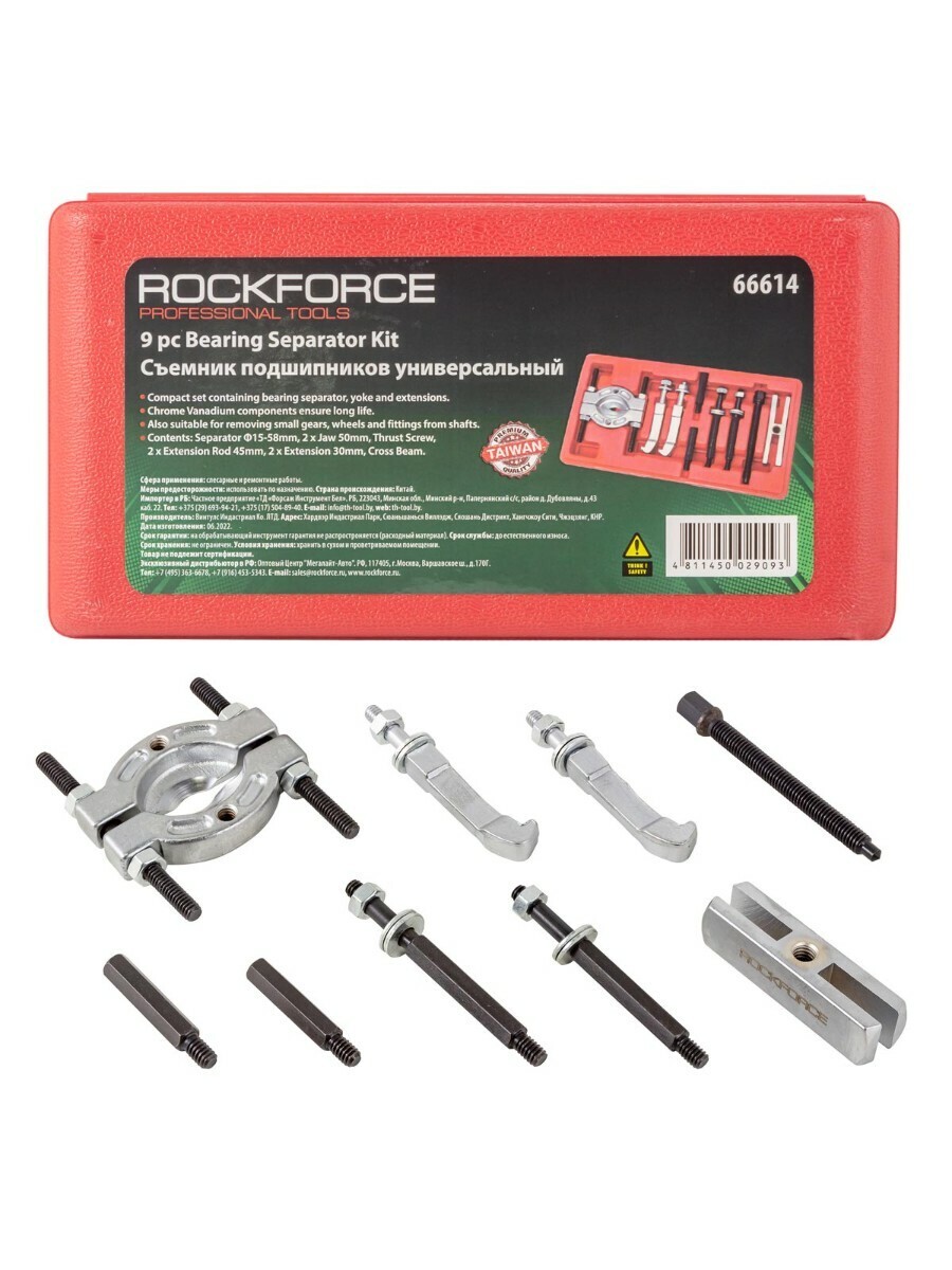 Съемники подшипников сегментного типа с сепаратором 15-58мм применяется для снятия подшипников при распрессовке ступичного подшипника. Для снятия подшипника нужно зажать его сепаратором (гайками фиксируем разбежку губок сепаратора), в сепаратор вкручиваем удлинители, на удлинители одеваем коромысло и вставляем болт упираясь в центральную часть штока. При прокручивании болта с помощью трещотки снимаем подшипник. Силовые элементы изготовлены из углеродистой стали, что позволяет достигать больших нагрузок на съёмник в процессе работы. Съемник подшипников сегментного типа широко используется в автомобильной, промышленной и других отраслях для снятия подшипников с валов, валов с корпусов и других подобных операций. Он обеспечивает эффективное и безопасное удаление подшипников без повреждения сопрягаемых поверхностей. Комплектация: Сепаратор 15-58 мм., Н-образная траверса 1шт., силовой винт 1шт., удлинители 4шт., лапы 2шт.