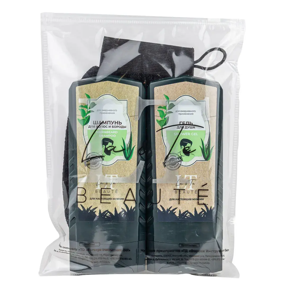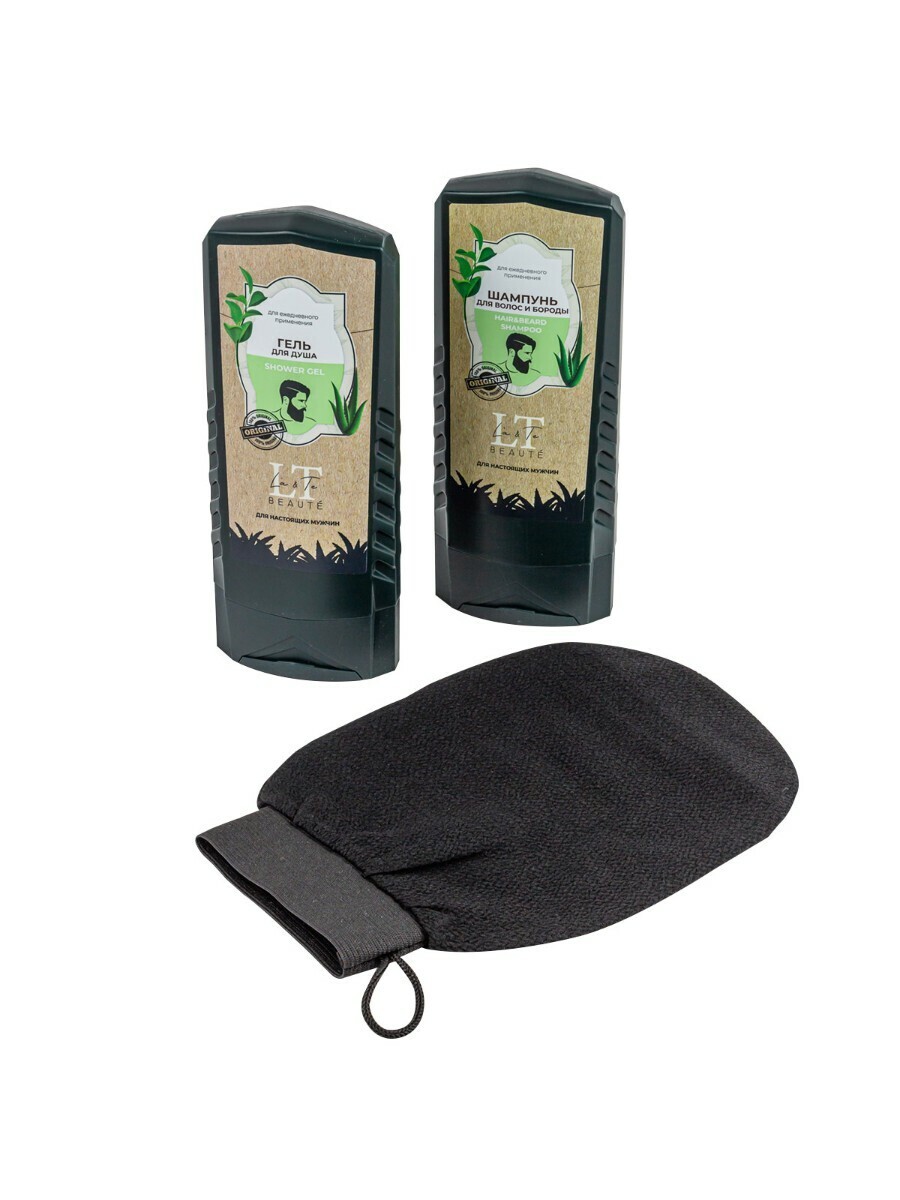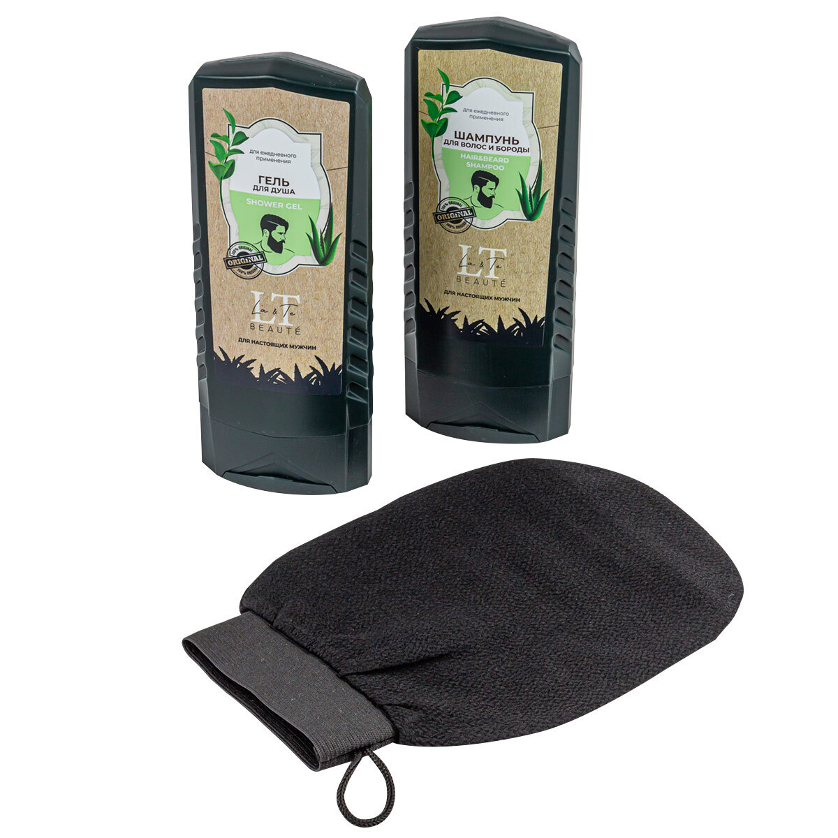 Мужской набор парфюмированной уходовой косметики от белорусского бренда La & Te beauté - это отличные средства для очищения и тонизирования кожи тела и головы. Утонченный древесный запах зарядит энергией утром после душа! Мужской очищающий шампунь обеспечивает защиту от загрязнений и против выпадения волос, укрепляет фолликулы, стимулирует активный рост волос. Бальзам для волос и бороды дополнительно увлажняет их. Универсальный гель бережно очищает кожу, не лишая ее необходимой влаги. Ароматная пена отлично освежает волосы и кожу головы, избавляя от избытка кожного сала, грязи и пота. Такой набор подойдет для мужчин любого возраста с любым типом кожи и волос. Дополнительно подарочный набор укомплектован мягким махровым полотенцем. Подарите себе или своему близкому человеку хорошие уходовые средства! Набор косметики: 1.Шампунь для волос и бороды,250 мл; 2.Гель для душа,250 мл; 3.Мочалка -руковица(черная)