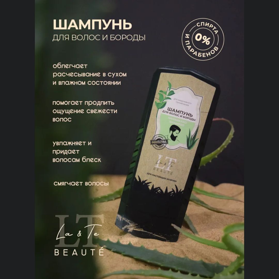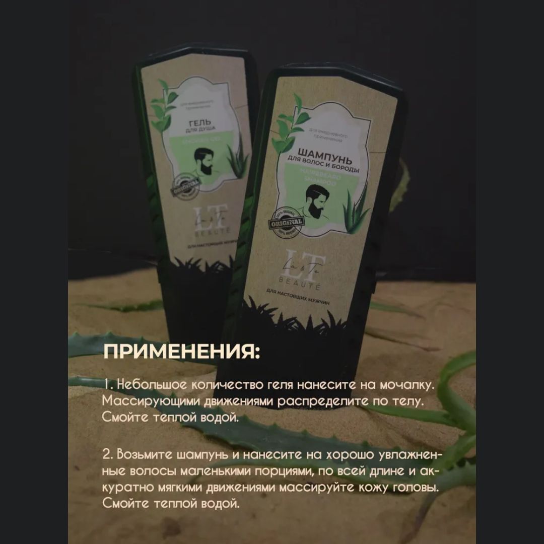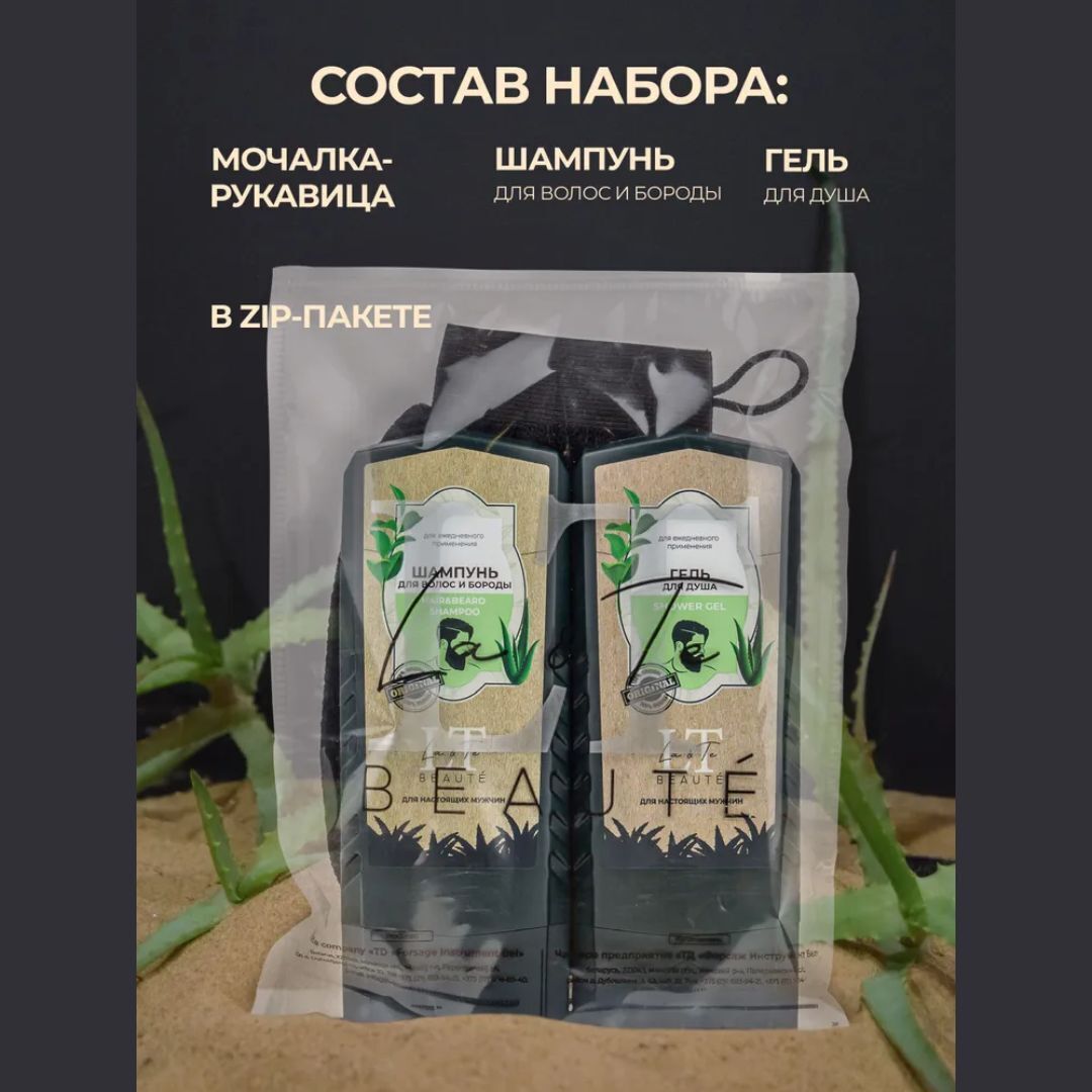 Мужской набор парфюмированной уходовой косметики от белорусского бренда La & Te beauté - это отличные средства для очищения и тонизирования кожи тела и головы. Утонченный древесный запах зарядит энергией утром после душа! Мужской очищающий шампунь обеспечивает защиту от загрязнений и против выпадения волос, укрепляет фолликулы, стимулирует активный рост волос. Бальзам для волос и бороды дополнительно увлажняет их. Универсальный гель бережно очищает кожу, не лишая ее необходимой влаги. Ароматная пена отлично освежает волосы и кожу головы, избавляя от избытка кожного сала, грязи и пота. Такой набор подойдет для мужчин любого возраста с любым типом кожи и волос. Дополнительно подарочный набор укомплектован мягким махровым полотенцем. Подарите себе или своему близкому человеку хорошие уходовые средства! Набор косметики: 1.Шампунь для волос и бороды,250 мл; 2.Гель для душа,250 мл; 3.Мочалка -руковица(черная)
