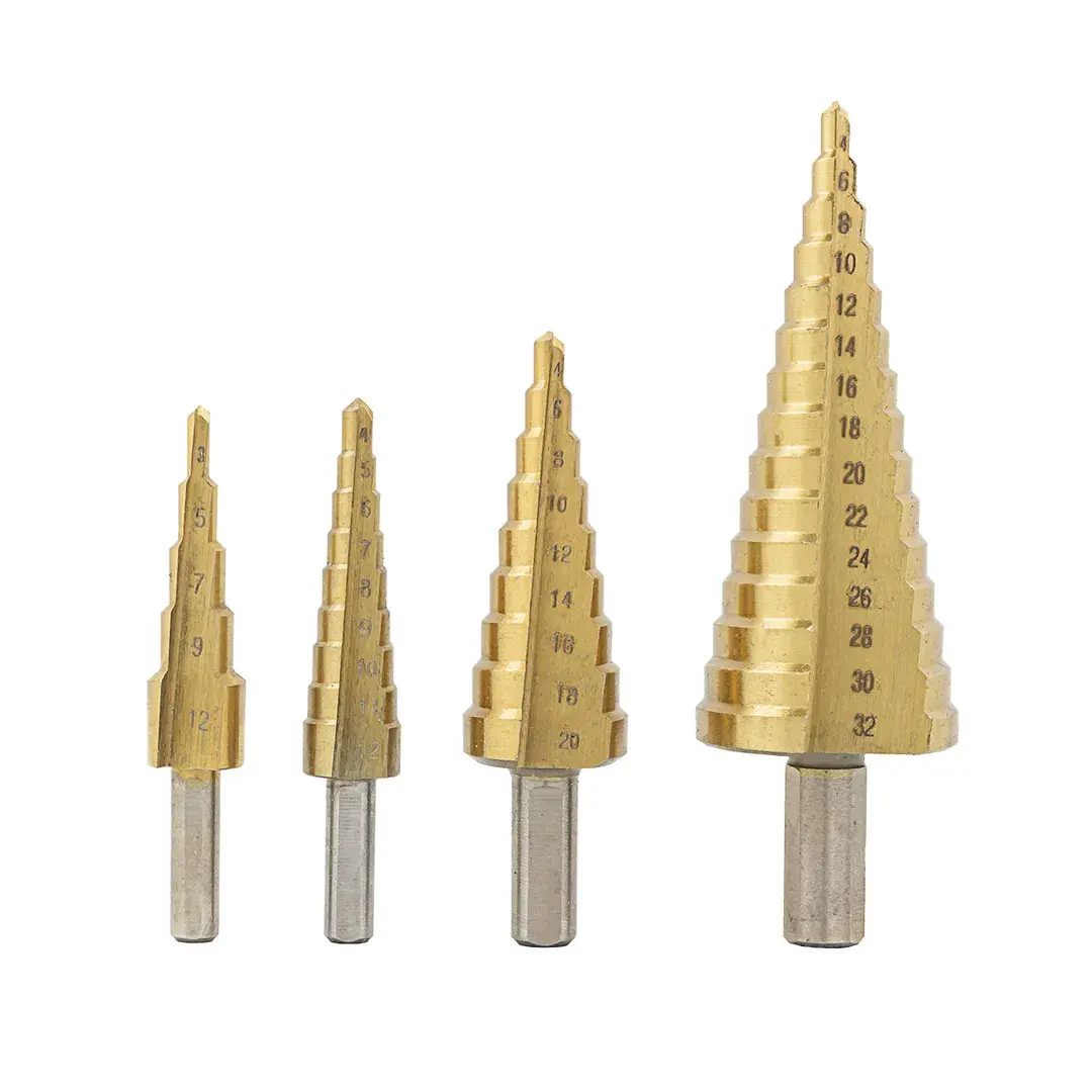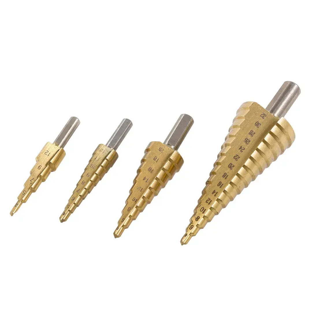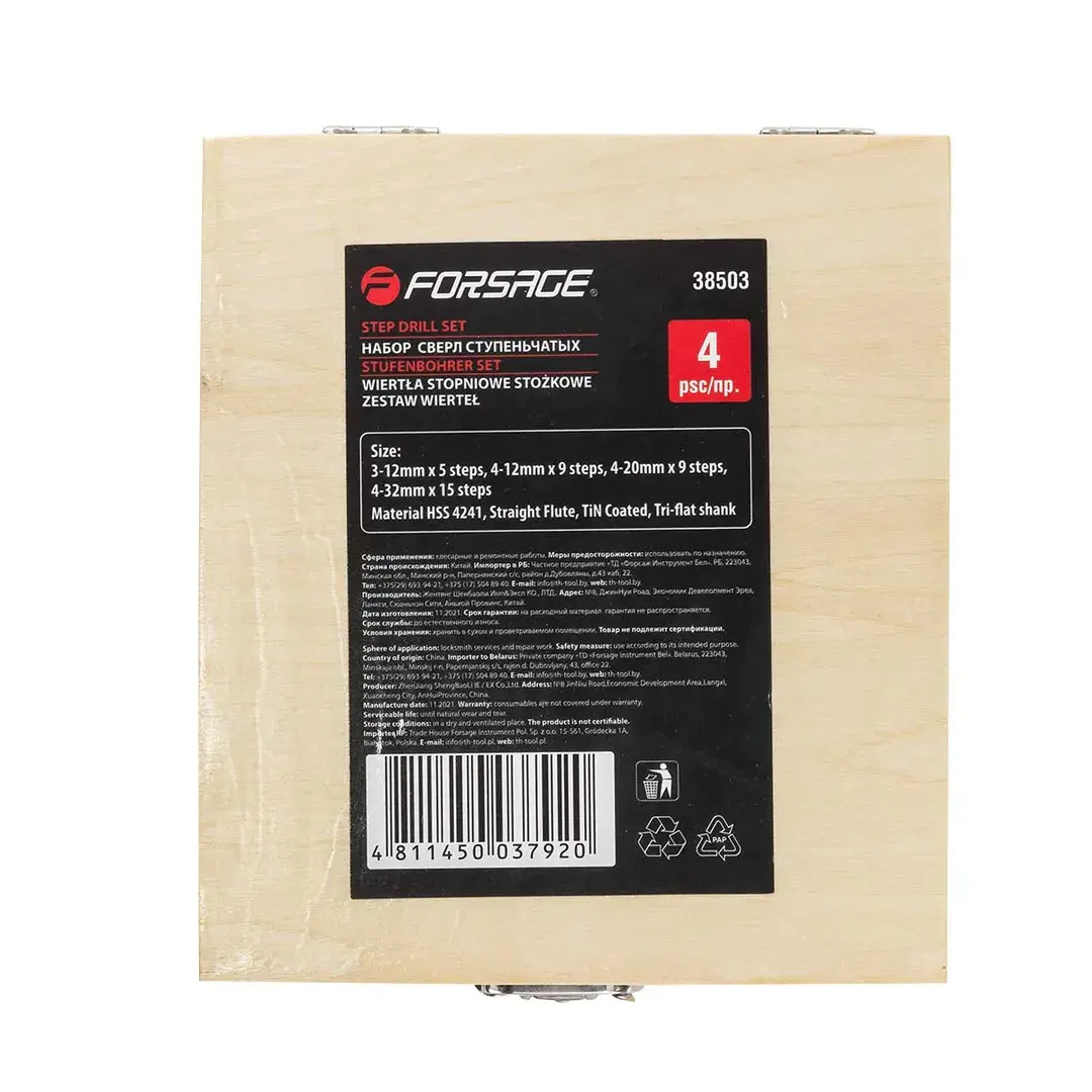 Набор сверл ступенчатых из 4 штук в кейсе изготовлен из высококачественной инструментальной быстрорежущей стали HSS 4241. Ступенчатые сверла предназначены для сверления отверстий разных диаметров в листовых и тонкостенных изделий из стали, цветных металлов, нержавеющей стали и пластика. Принцип работы конусного сверла прост: каждый следующий размер имеет плавный переход в виде ступеньки, что позволяет получать аккуратное отверстие нужного диаметра, не меняя при этом насадки. Преимущество ступенчатых сверл в том, что они позволяют сделать отверстия с более ровными кромками, в сравнении со спиральными и перовыми аналогами. Для отверстий различных диаметров применяется одно ступенчатое сверло. На каждой ступени есть маркировка фактического диаметра. Конусное сверло используется для обработки очень тонкого листового металла и идеально подходит для обработки цветных металлов без деформации. Так же сверло ступенчатое применимо для работы с ПВХ, гипсокартоном, пластиком, древесными плитами. При больших объемах работ позволяет экономить время за счет отсутствия необходимости замены сверл различных диаметров. Сверла совместимы с разными моделями станков и дрелей (сверлильный станок, ручная дрель, аккумуляторная дрель). Именно благодаря своей универсальности ступенчатое сверло по металлу отличается повышенным интересом со стороны профессиональных мастеров. Одно сверло заменяет целый набор традиционных спиральных сверл. Сверла поставляются в практичном деревянном кейсе с удобным доступом. Размеры: 3-12, 4-12, 4-20, 4-32мм.