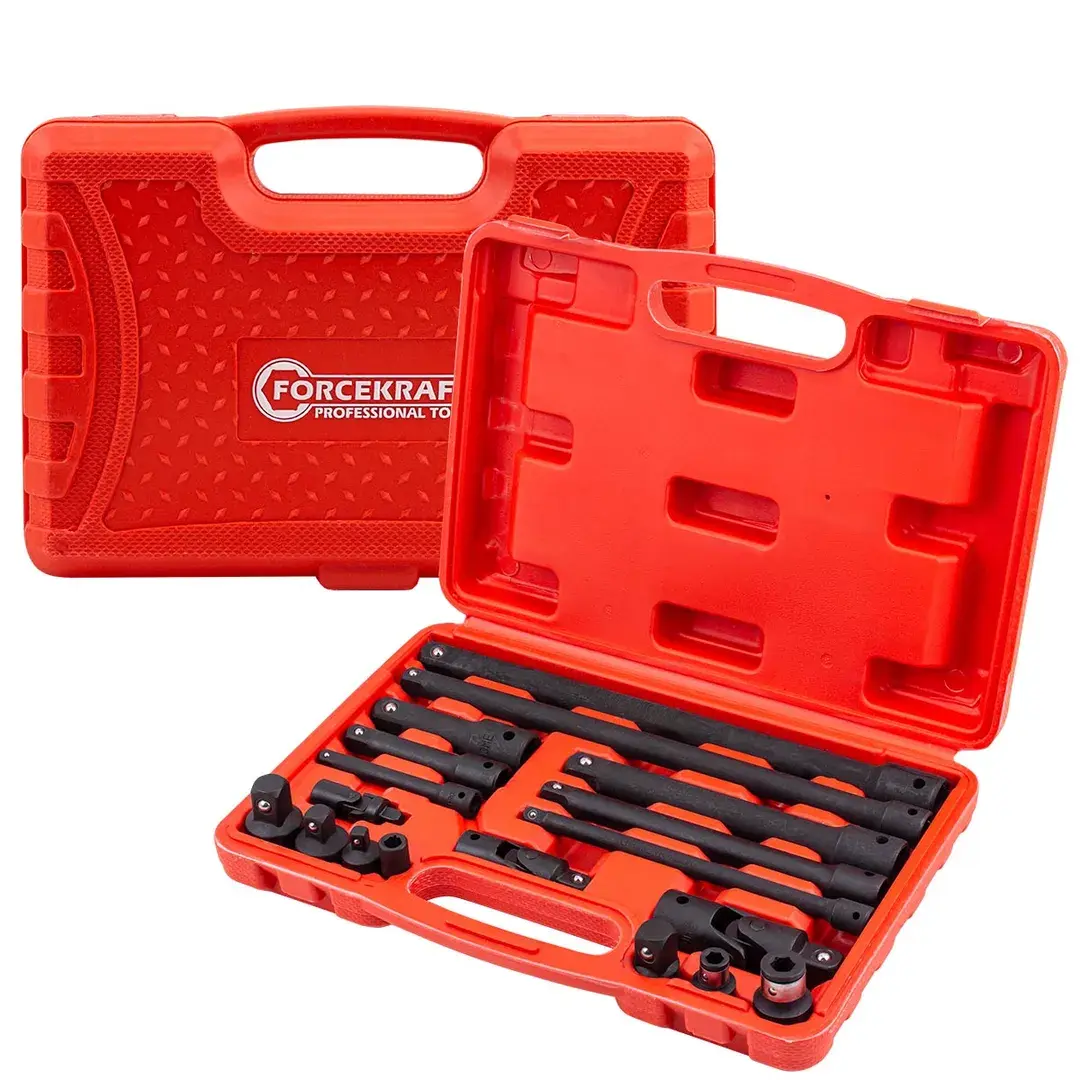 Набор удлинителей и адаптеров 18пр. 1/4''3/8''1/2'' FORCEKRAFT FK-T4057-18