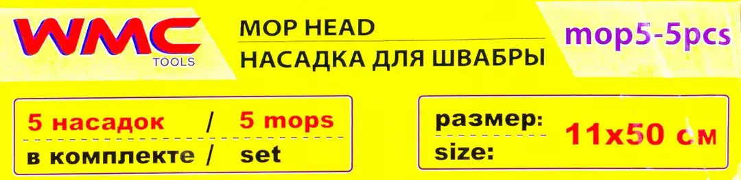 Накладка сменная из микрофибры для швабры WMC-05 (5 шт/к-т) WMC TOOLS WMC-mop5-5pcs