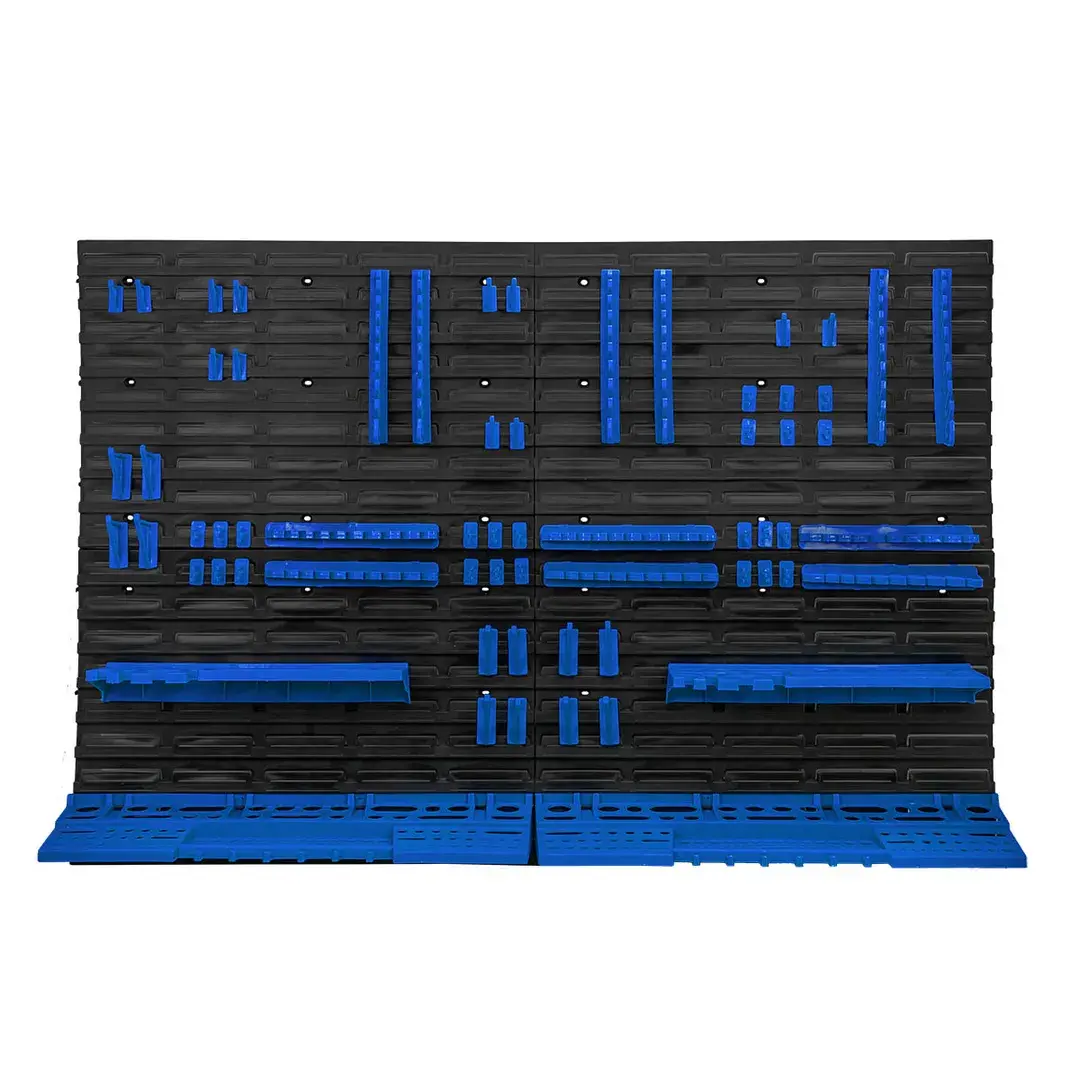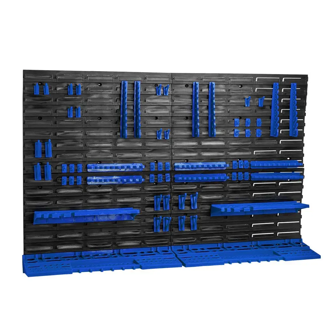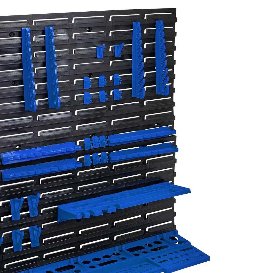 Настенный пластиковый стеллаж-стенд - идеальное решение для организации рабочего пространства, подходит для дома, гаража или мастерской. Можно легко регулировать количество полок/крючков и место крепления на панели благодаря съемному способу крепления полок/крючков. Весь комплект устойчив к погодным условиям, жиру, маслу. Способ крепления: болты. Размер стенда в собранном виде 78х155,2см. Состав стенда: Крючки 35х35мм - 12шт; Крючки 55х55мм - 12см; Панели 576х390х18мм - 4шт; Держатели для ключей - 6шт; Держатели для отверток - 24шт; Универсальные полки для инструментов 380х111х50мм - 2шт; Универсальные плоки для инструментов 576х158х67мм - 2шт.