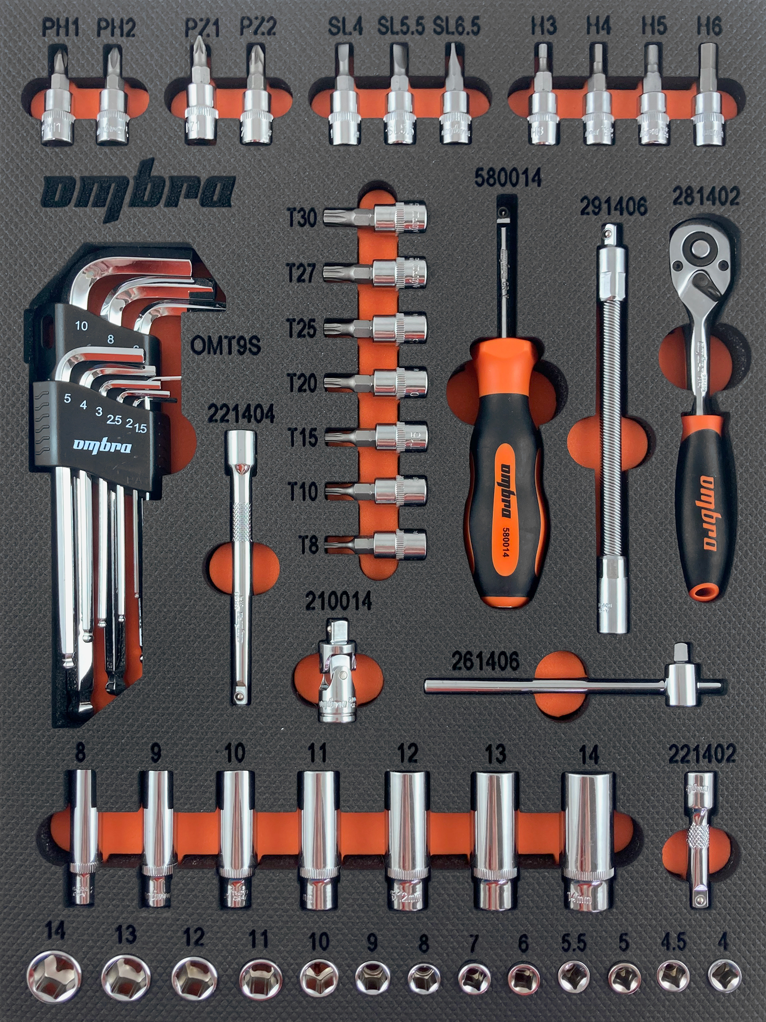 Описание Зеркально отполированное хромоникелевое покрытие придает инструменту OMBRA безупречный вид и облегчает удаление загрязнений после работы. Накатка на переходах позволит надежно удерживать головку в руках, работая с крепежом при свободном вращении без использования дополнительных приводов. Торцевые головки OMBRA изготовлены из легированной хромованадиевой стали по технологии, позволяющей при использовании прилагать нагрузку, превышающие предельно допустимые для подобного инструмента на 30-50%. Область применения Универсальный набор инструмента, применяющийся для обслуживания резьбовых деталей с внешним рабочим шестигранным профилем. Расширенный выбор аксессуаров для торцевых головок и насадок со вставками-битами для производства работ с крепежными деталями с различными внутренними рабочими профилями, включая внутренний TORX значительно расширяет область применения набора.