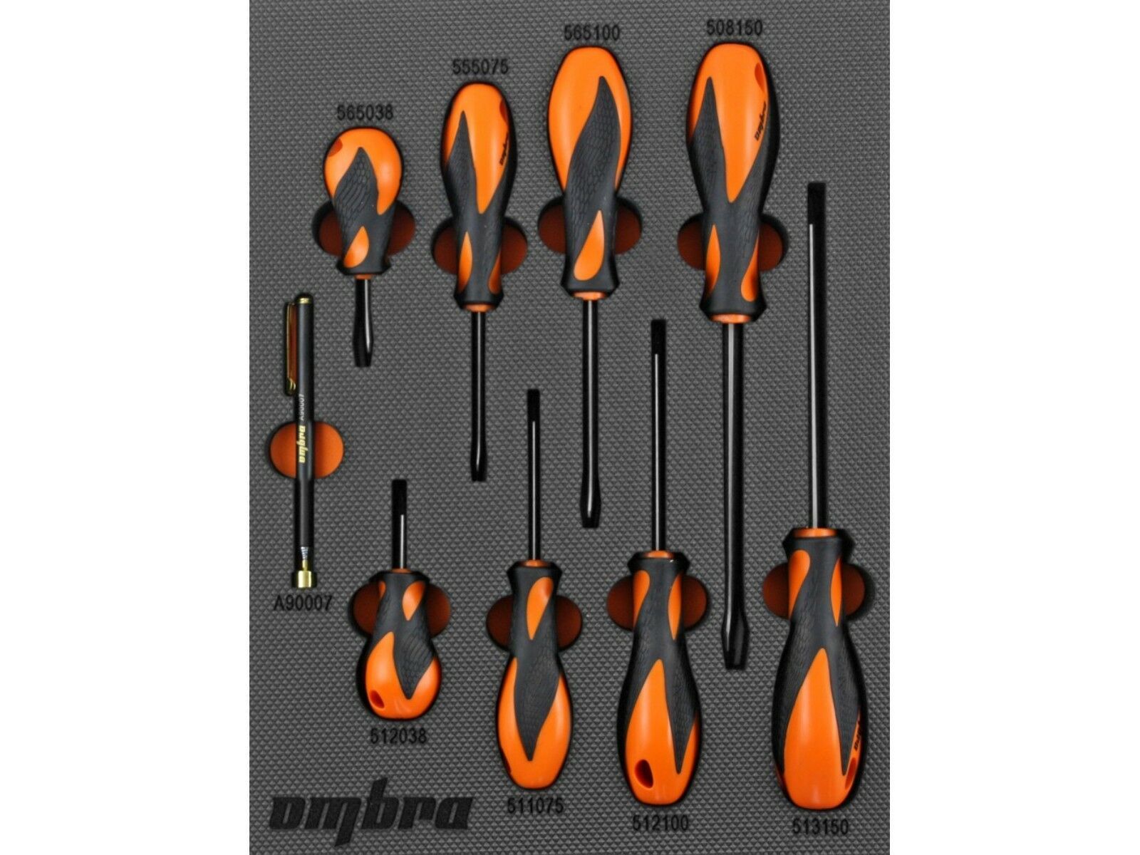 555075 Отвертка стержневая шлицевая BASIC, SL5.5х75 мм 565100 Отвертка стержневая шлицевая BASIC, SL6.5х100 мм 508150 Отвертка стержневая шлицевая BASIC, SL8х150 мм 565038 Отвертка стержневая шлицевая BASIC, SL6.5х38 мм 511075 Отвертка стержневая крестовая BASIC, РН1х75 мм 512100 Отвертка стержневая крестовая BASIC, РН2х100 мм 513150 Отвертка стержневая крестовая BASIC, РН3х150 мм 512038 Отвертка стержневая крестовая BASIC, РН2х38 мм A90007 Рукоятка телескопическая, магнитная, 640 мм OMT9ET Ложемент EVA для набора инструмента 9 предметов, 280*375*35 мм