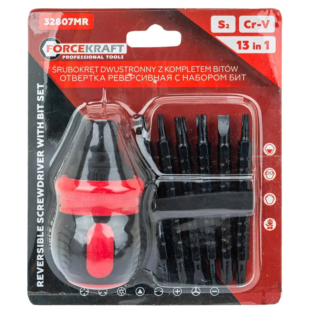Отвертка реверсивная в комплекте с битами, набор FORCEKRAFT FK-32807MR