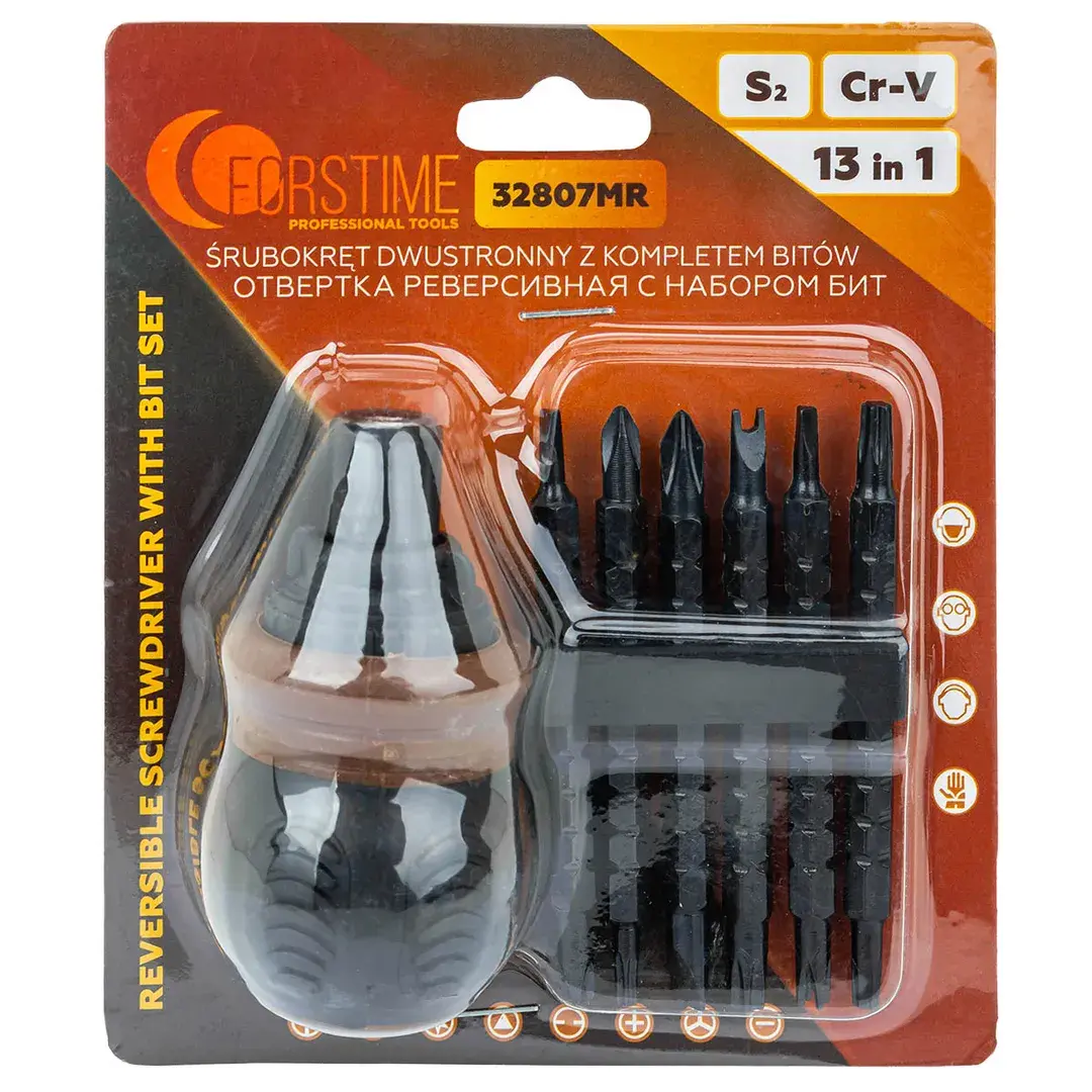 Отвертка реверсивная в комплекте с битами, набор FORSTIME FT-32807MR