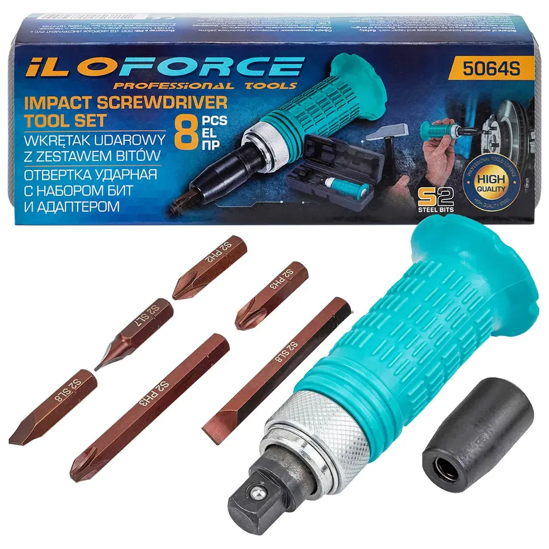 Отвертка ударная с набором бит и адаптером 8пр. ILOforce IF-5064S