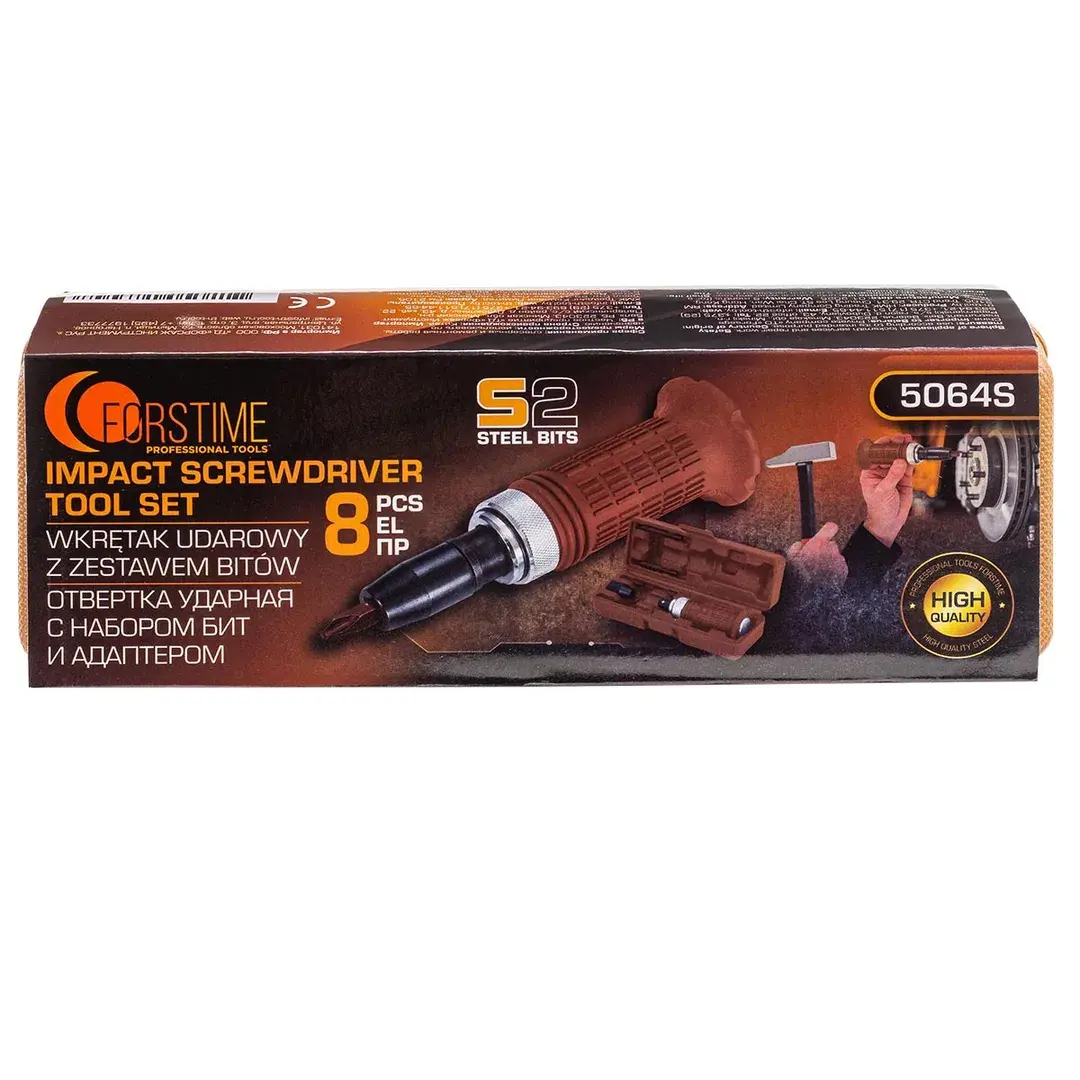 Отвертка ударная с набором бит и адаптером 8пр. FORSTIME FT-5064S