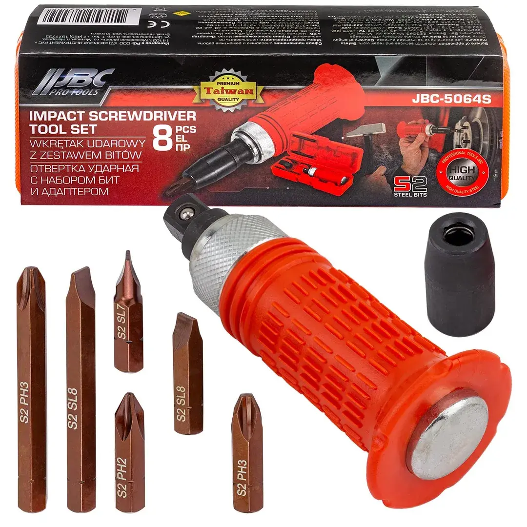 Отвертка ударная с набором бит и адаптером 8пр. JBC JBC-5064S