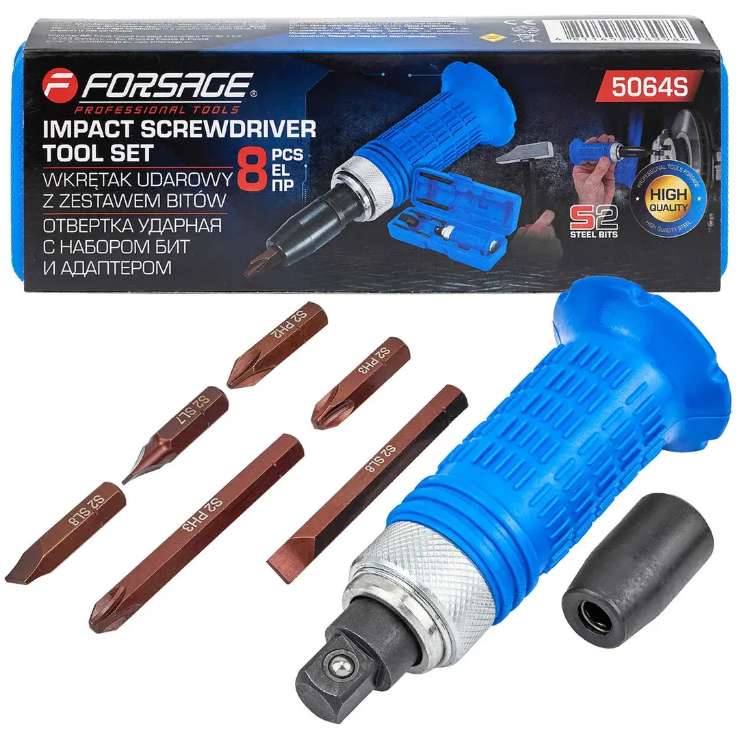 Отвертка ударная с набором бит и адаптером 8пр. Forsage F-5064S