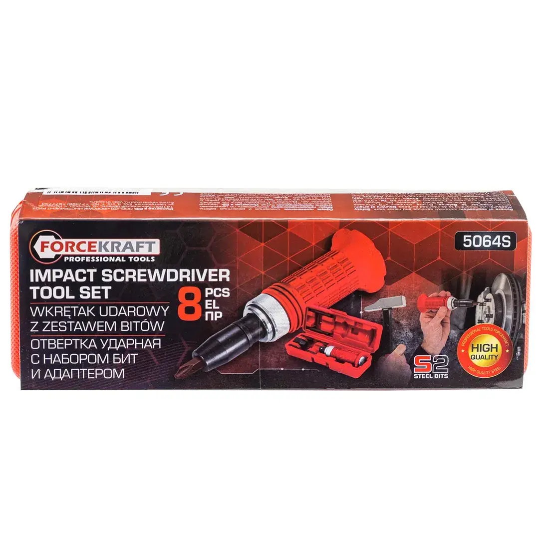 Отвертка ударная с набором бит и адаптером 8пр. FORCEKRAFT FK-5064S