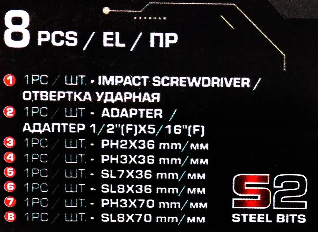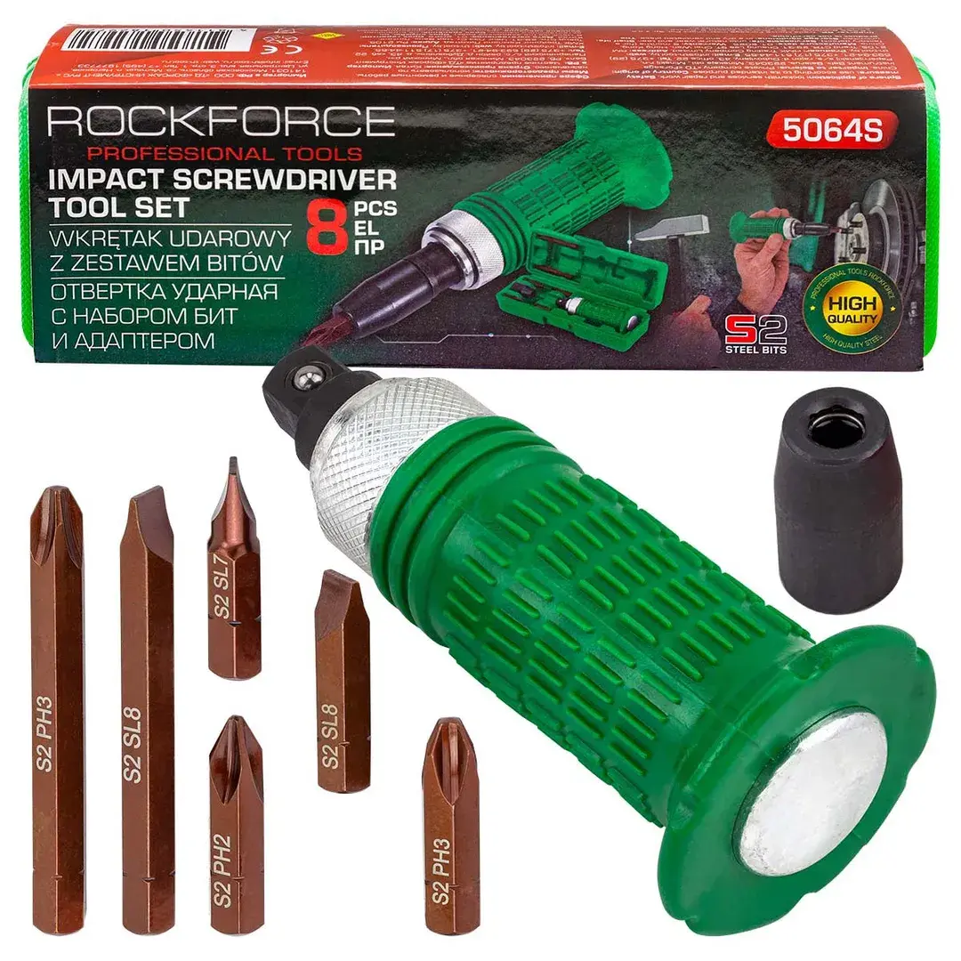 Отвертка ударная с набором бит и адаптером 8пр. RockFORCE RF-5064S