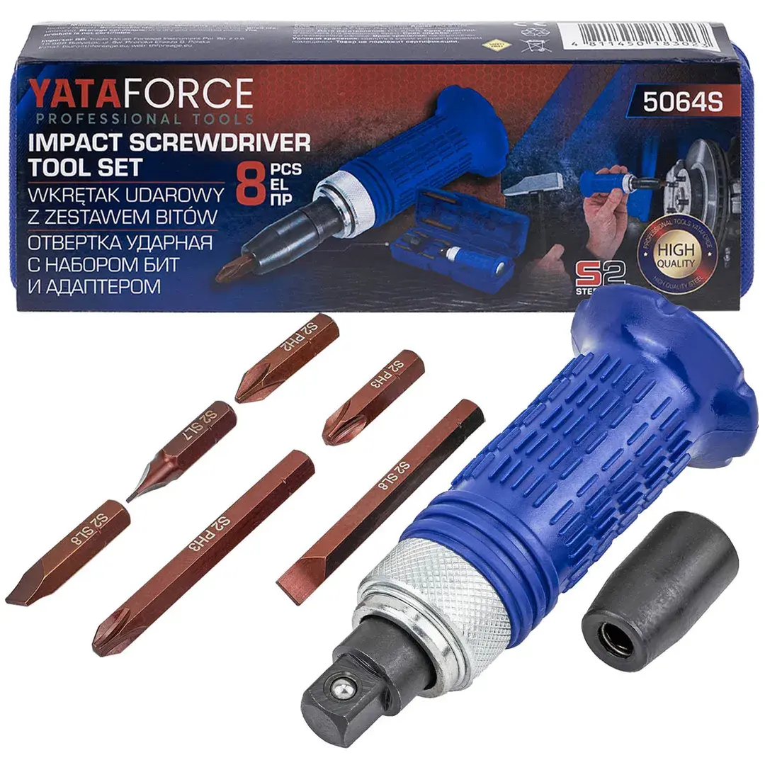 Отвертка ударная с набором бит и адаптером 8пр. YATAFORCE YF-5064S