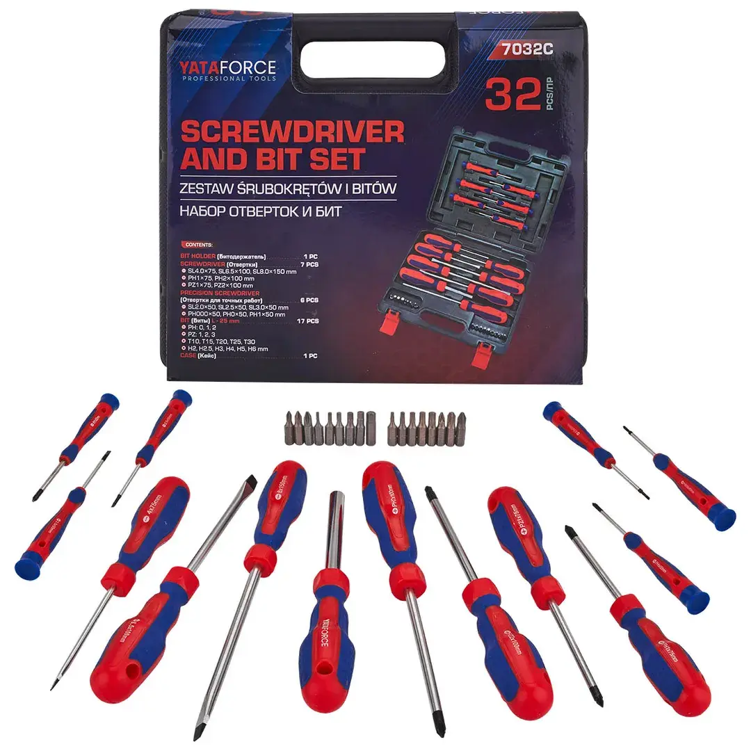 Отвертки в комплекте с битами, набор 32пр. YATAFORCE YF-7032C