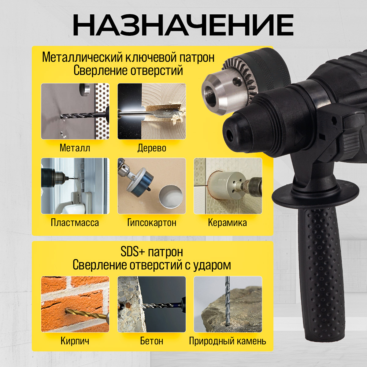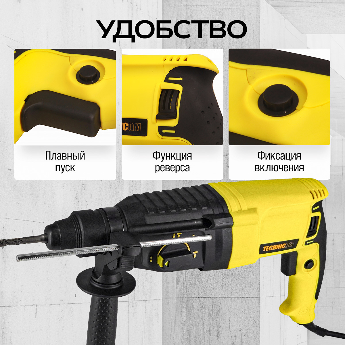 Перфоратор электрический TECHNICOM TC-ERH26, 800Вт, 220В, 900 об/мин, 4000 уд/мин