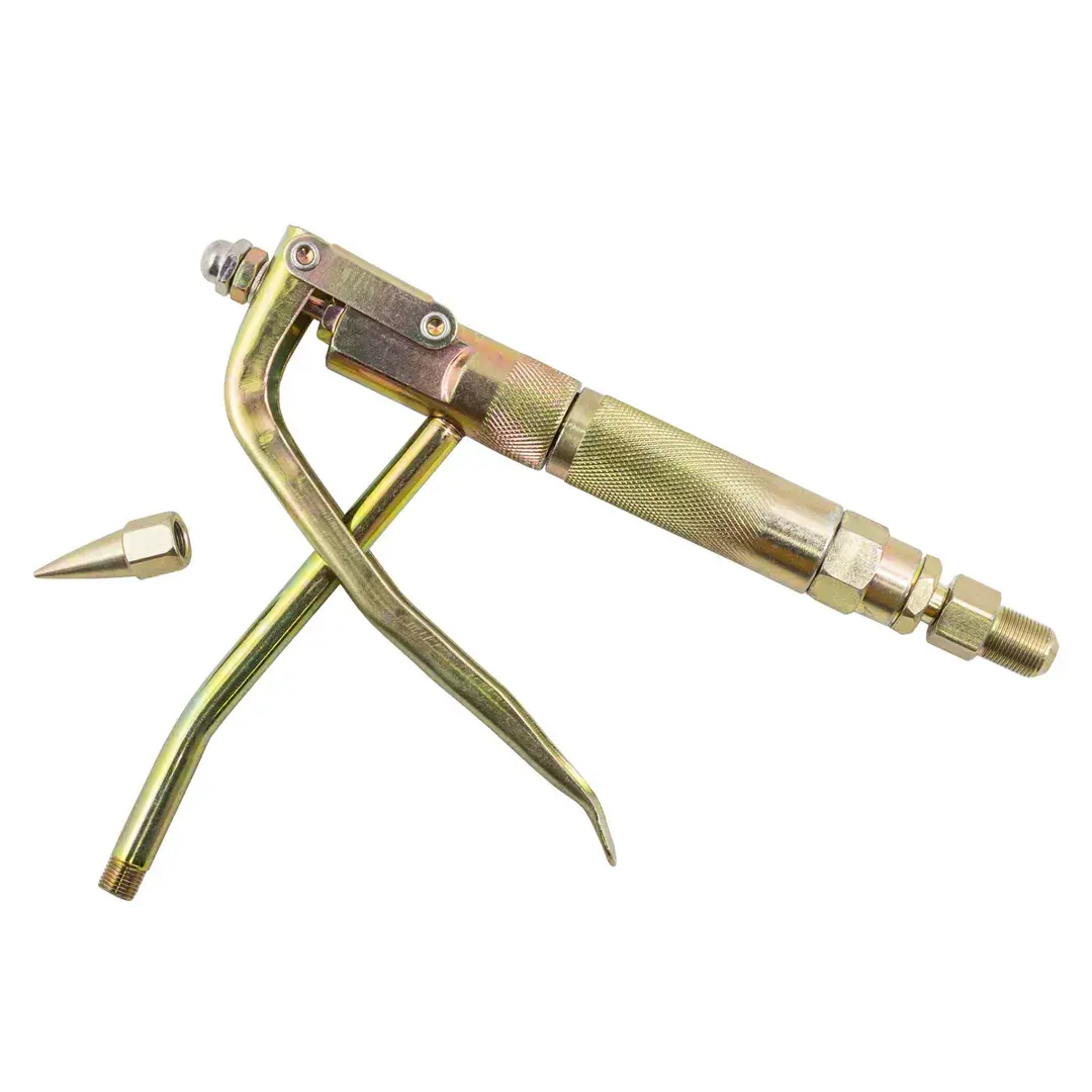Пистолет к установке для нагнетателя густой смазки представляет собой специальное устройство, которое используется для нанесения густой смазки на различные поверхности. Он оснащен пневматическим механизмом, который обеспечивает сильное давление, необходимое для выталкивания густой смазки из емкости. Пистолет пневмо к установке для нагнетателя густой смазки имеет специальную насадку, которая позволяет точно направлять поток смазки. Он также может быть оснащен различными насадками с разными диаметрами отверстий, чтобы выбрать подходящий размер для конкретной задачи.