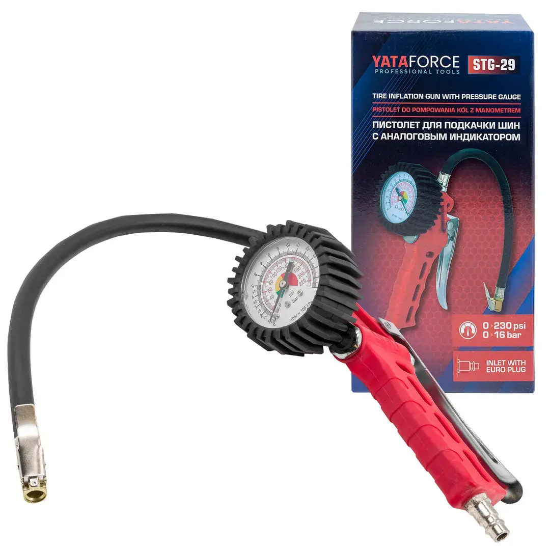 Пистолет для подкачки шин c аналоговым манометром - это надежное устройство, которое используется для накачивания шин автомобилей, мотоциклов, велосипедов и других транспортных средств. Он оснащен аналоговым манометром, который позволяет точно контролировать давление в шинах, и имеет шланг длиной 40 см, что обеспечивает удобство при работе в труднодоступных местах. Рабочее давление 0-16бар.