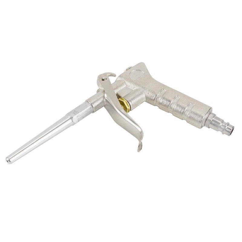 Пистолет обдувочный - это инструмент для очистки струей воздуха. Длина сопла составляет 90мм. Позволяет добиться точечной и направленной очистки, благодаря узкому и сфокусированному потоку сжатого воздуха, что особенно полезно при работе с мелкими или сложными деталями, для очистки или удаления пыли, грязи, опилок, остатков и других мелких частиц с поверхностей или из узких пространств. Продувочный пистолет снабжен механизмом для подачи сжатого воздуха. Ручка пистолета имеет удобную форму для удержания и контроля инструмента. Применяется для очистки двигателей, салона автомобиля, вентиляционных отверстий и других труднодоступных мест от пыли, песка и других загрязнений.