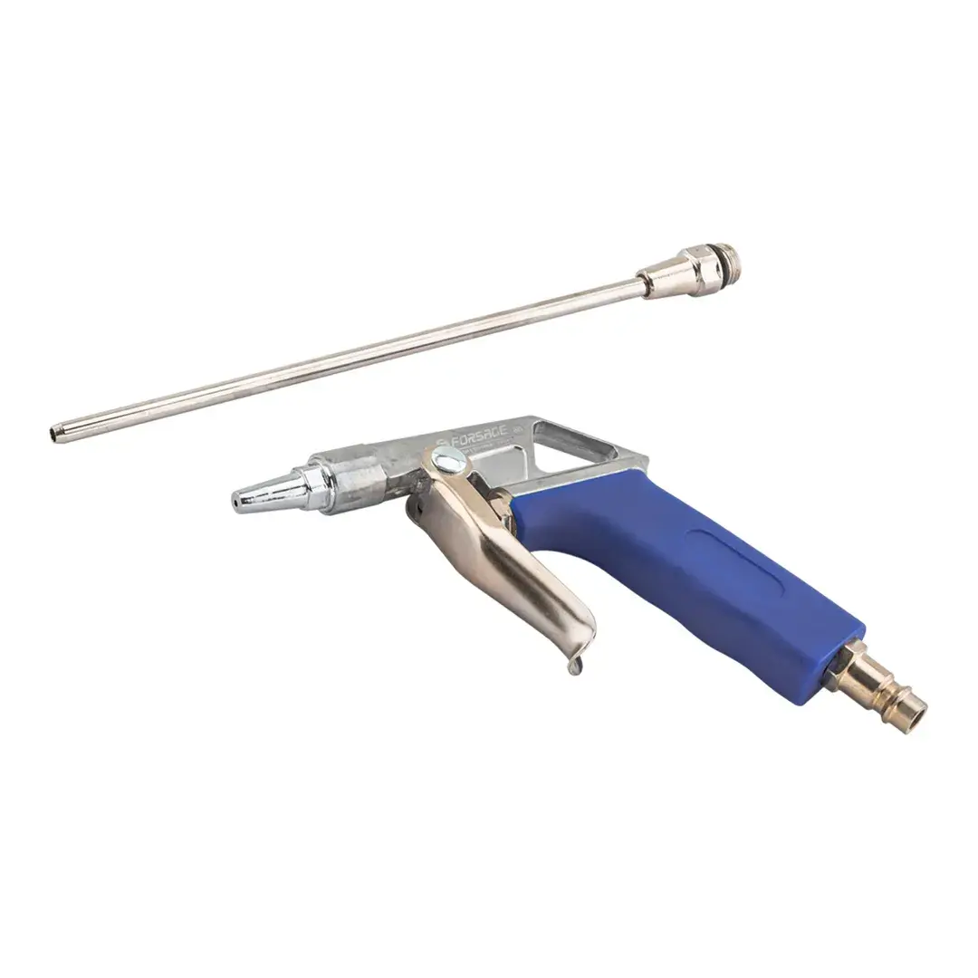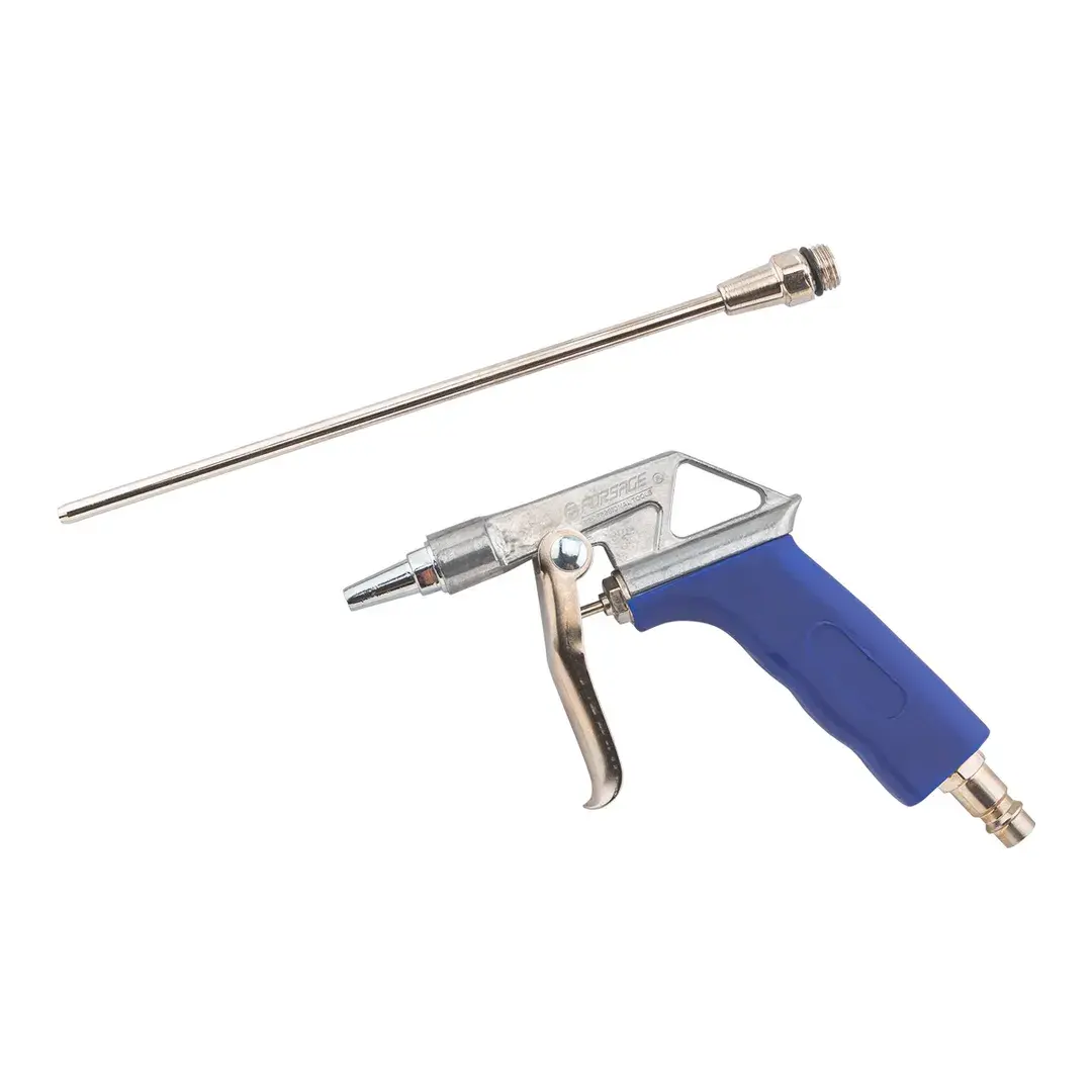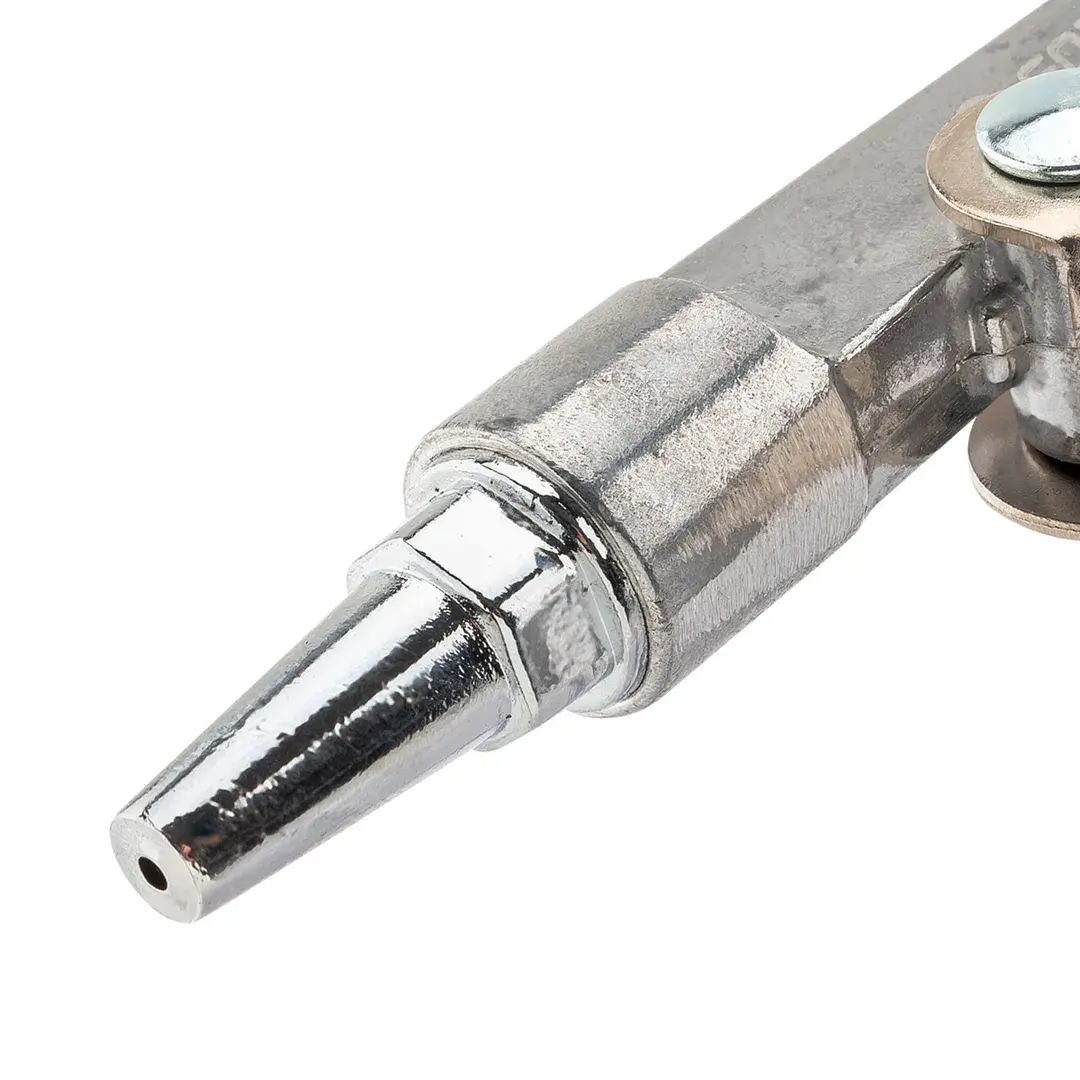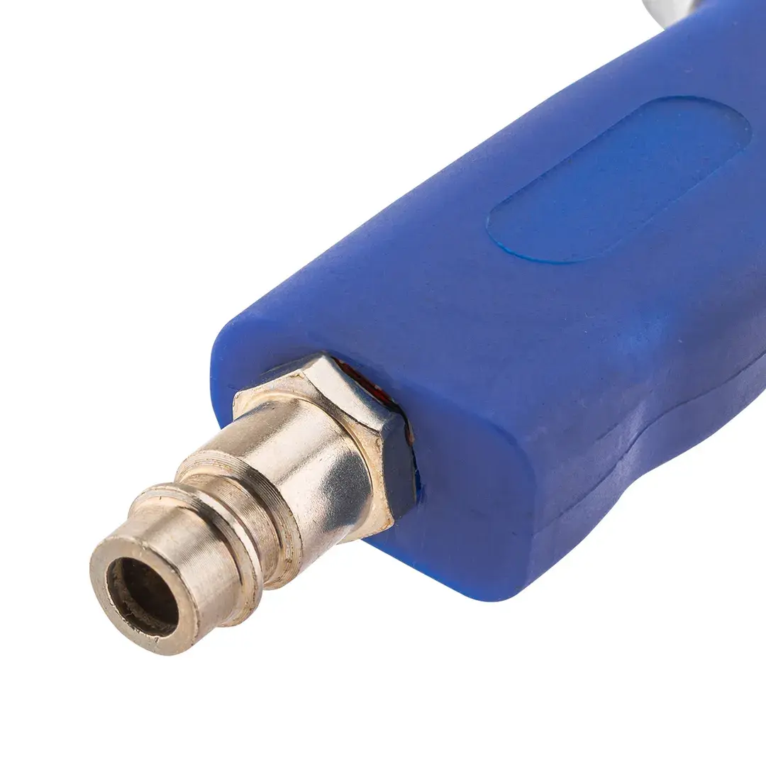 Обдувочный пистолет является незаменимым инструментом для любого мастера или работника, занимающегося ремонтом или обслуживанием различного оборудования. Сопло в пистолете 25 мм и удлиненное сопло 130 мм в комплекте. Cменные сопла. Диаметр сопла 2.5 мм. С его помощью можно быстро и эффективно удалить пыль, грязь и другие загрязнения с поверхности, что улучшает качество работы и предотвращает возможные проблемы в будущем. Продувочный пистолет имеет ручку, сопло, штуцер и механизм для подачи сжатого воздуха. Длина сопла в 130 миллиметров позволяет проникать в труднодоступные места, что особенно полезно при работе с электроникой или другими сложными устройствами. Рабочее давление 6,3-8 Bar.