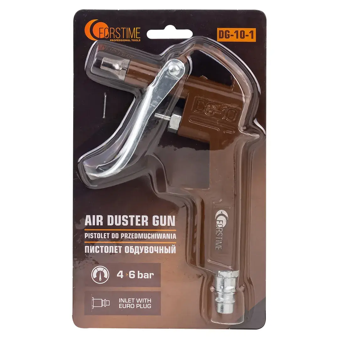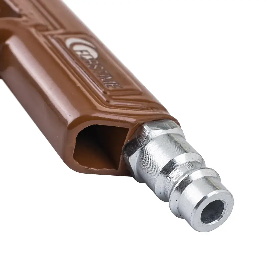 Пистолет обдувочный - это инструмент для очистки струей воздуха. Длина сопла составляет 15мм. Позволяет добиться точечной и направленной очистки, благодаря узкому и сфокусированному потоку сжатого воздуха, что особенно полезно при работе с мелкими или сложными деталями, для очистки или удаления пыли, грязи, опилок, остатков и других мелких частиц с поверхностей или из узких пространств. Продувочный пистолет снабжен механизмом для подачи сжатого воздуха. Ручка пистолета имеет удобную форму для удержания и контроля инструмента. Применяется для очистки двигателей, салона автомобиля, вентиляционных отверстий и других труднодоступных мест от пыли, песка и других загрязнений.