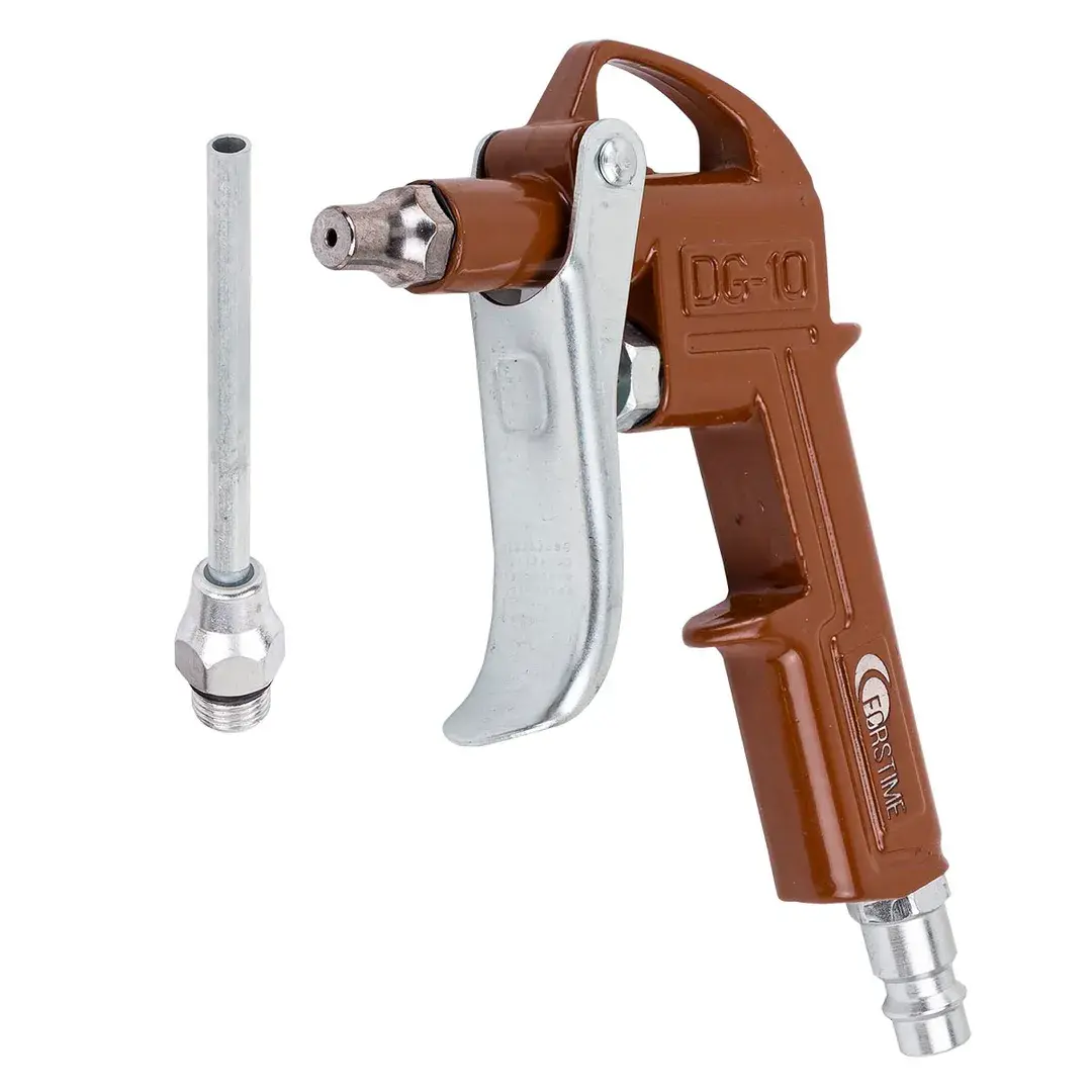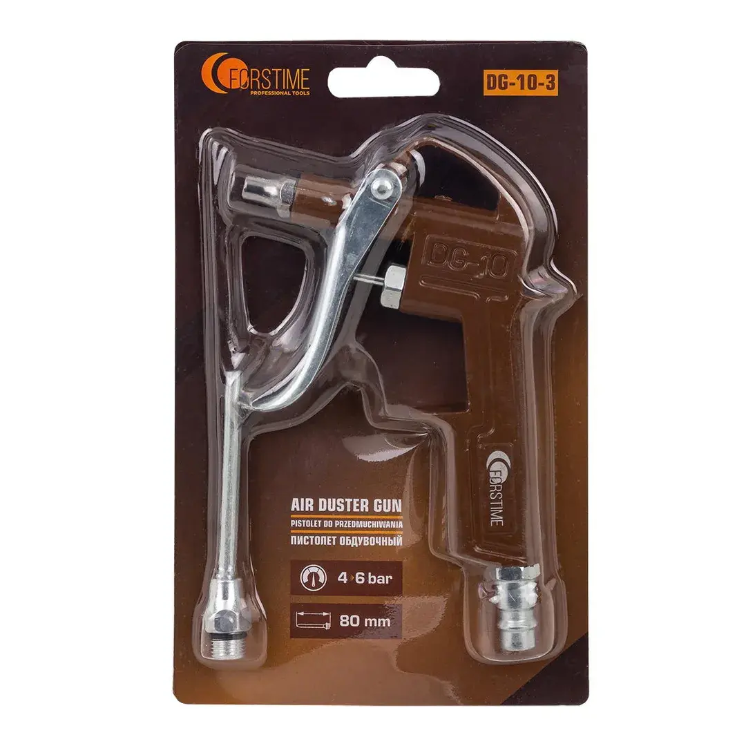 Пистолет обдувочный - это инструмент для очистки струей воздуха. Длина сопла составляет 80мм. Позволяет добиться точечной и направленной очистки, благодаря узкому и сфокусированному потоку сжатого воздуха, что особенно полезно при работе с мелкими или сложными деталями, для очистки или удаления пыли, грязи, опилок, остатков и других мелких частиц с поверхностей или из узких пространств. Продувочный пистолет снабжен механизмом для подачи сжатого воздуха. Ручка пистолета имеет удобную форму для удержания и контроля инструмента. Применяется для очистки двигателей, салона автомобиля, вентиляционных отверстий и других труднодоступных мест от пыли, песка и других загрязнений.