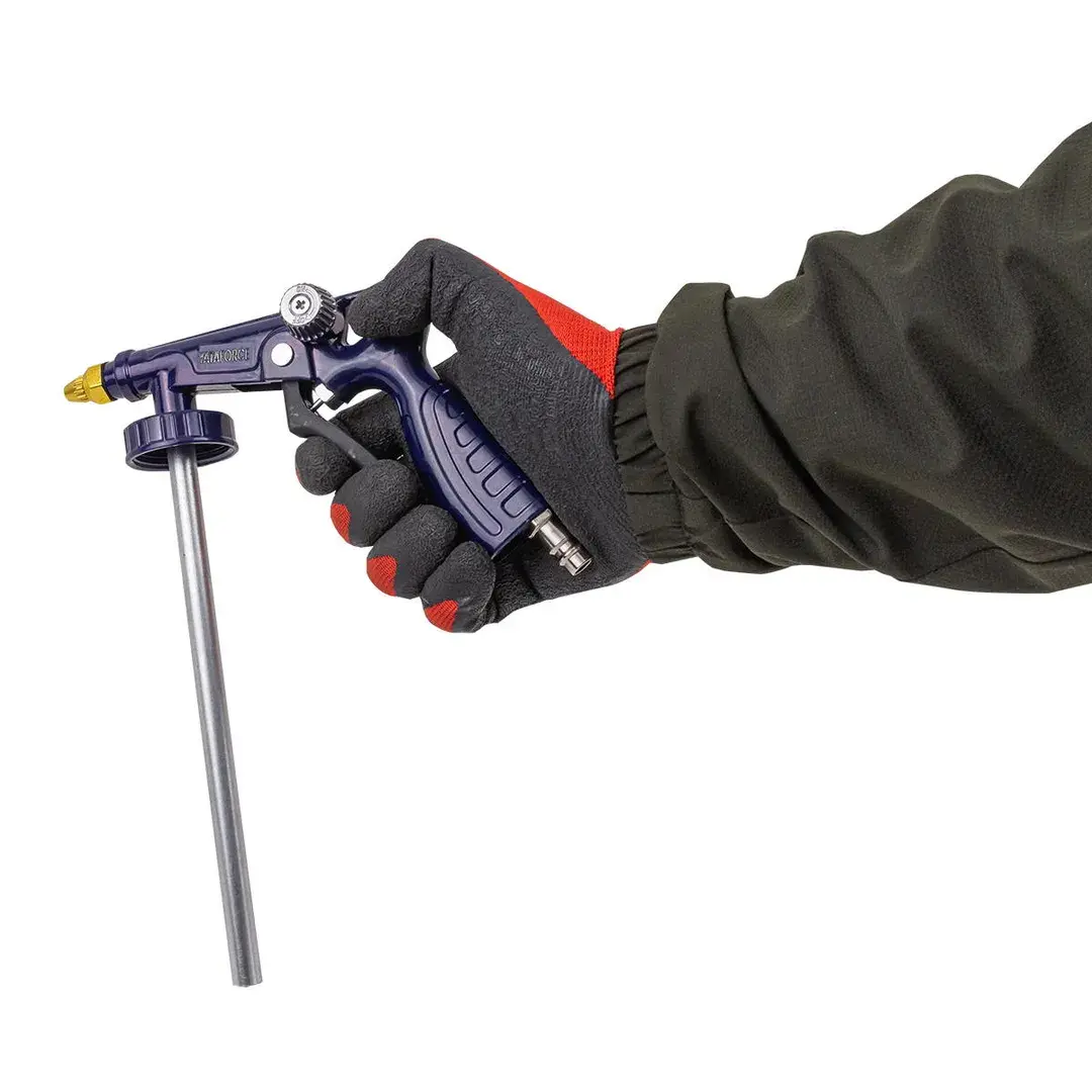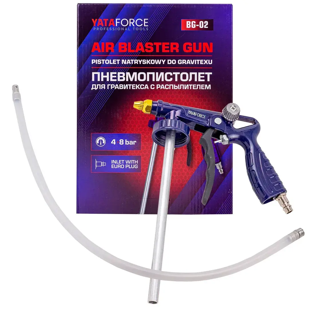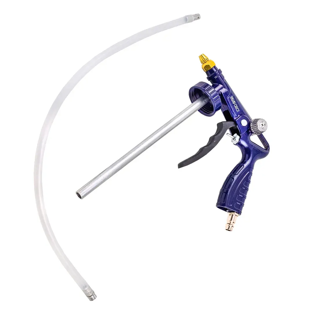 Пистолет с удлиненным соплом применяется для нанесения антигравия и шумоизоляции, смазывающих и защитных составов. Может применятся как пистолет для воска, мовиля, антикоррозийной обработки. В комплекте идёт гибкий шланг длиной 500мм для обработки в труднодоступных местах. Технические характеристики: внутренний диаметр сопла 5мм; рекомендуемое давление: 4-8 бар; входной штуцер: 1/4" наружная резьба-быстросъем евро.