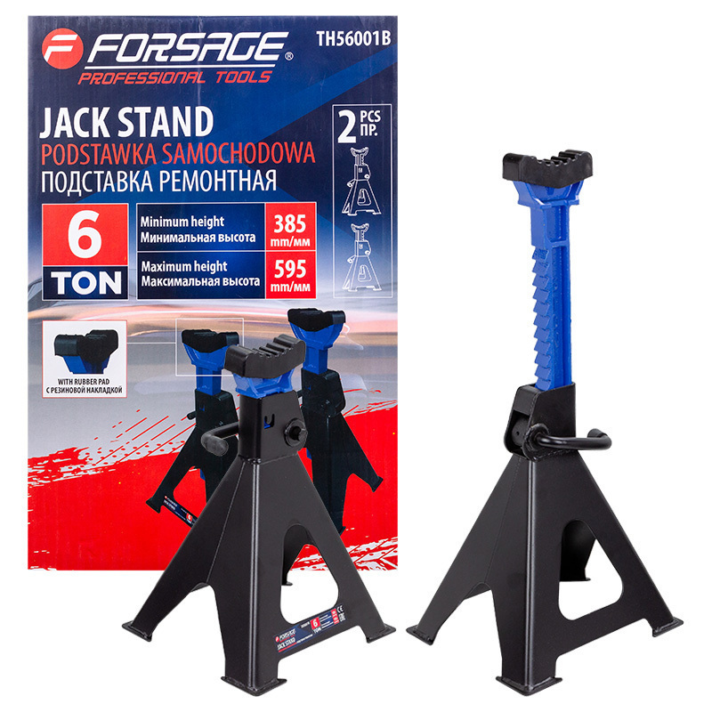 Подставка ремонтная страховочная с упорными пятками с максимальной нагрузкой до 6 тонн. Cтраховочная опора для автомобиля - это необходимый инструмент, который используется для обеспечения безопасности при техническом обслуживании, ремонте или замене колес на автомобиле. Cтраховочная опора для авто имеет регулируемую высоту, которая позволяет подстроить ее под нужный уровень автомобиля. Она также имеет широкое основание, которое обеспечивает стабильность и предотвращает опрокидывание автомобиля во время работы. Данная страховочная опора обладает высокой надежностью, что обеспечивает безопасность во время работы, а так же, обладает повышенной плотностью и имеет антикоррозийное покрытие. Такая подстраховка является необходимой для автомехаников или любителей при ремонте. связанном с поднятием авто, обеспечивая безопасность и надежность во время работ. Минимальная высота или высота подхвата: 385 мм. Максимальная высота: 595 мм. В комплект входят 2 подставки. Максимальная нагрузка каждой: 6000 кг.