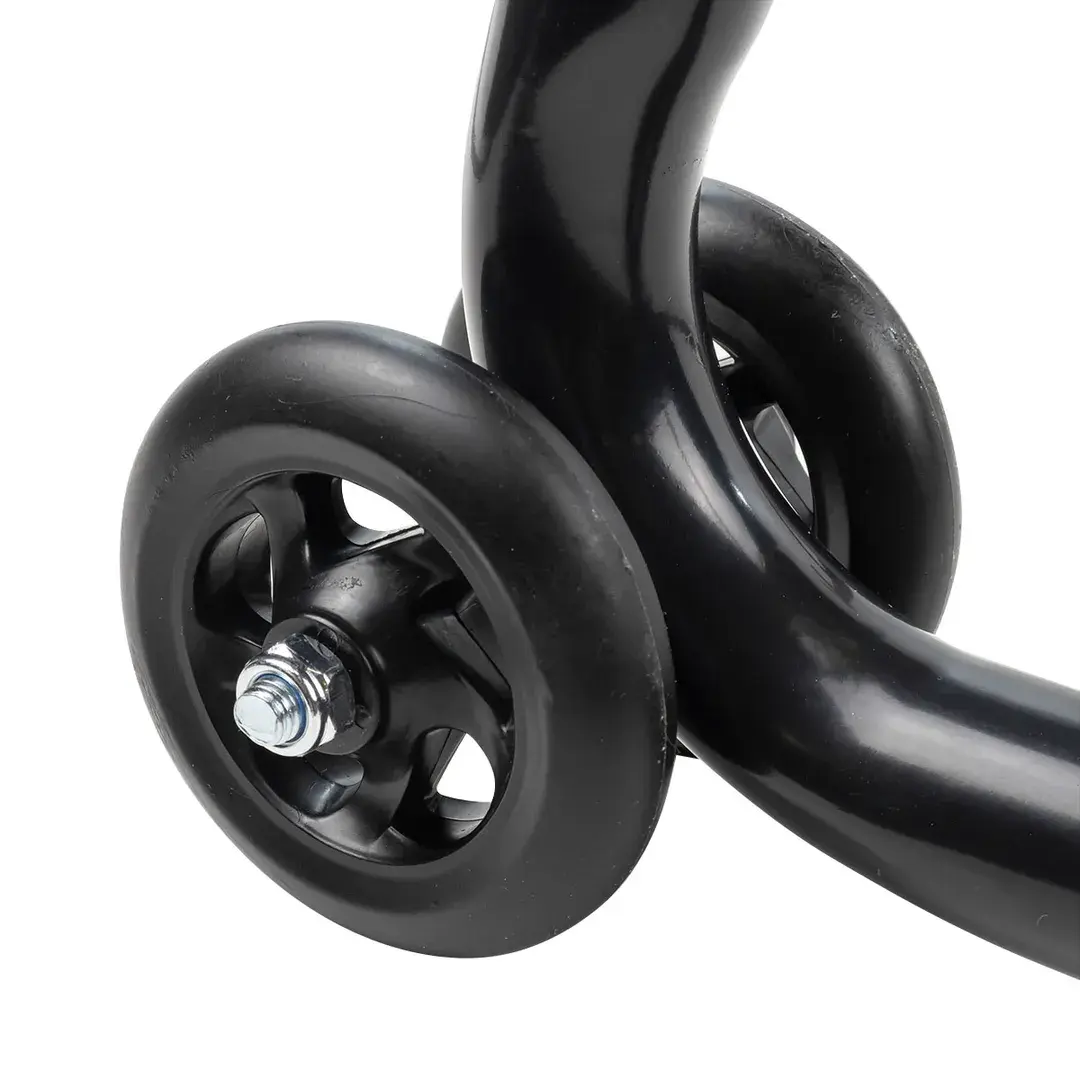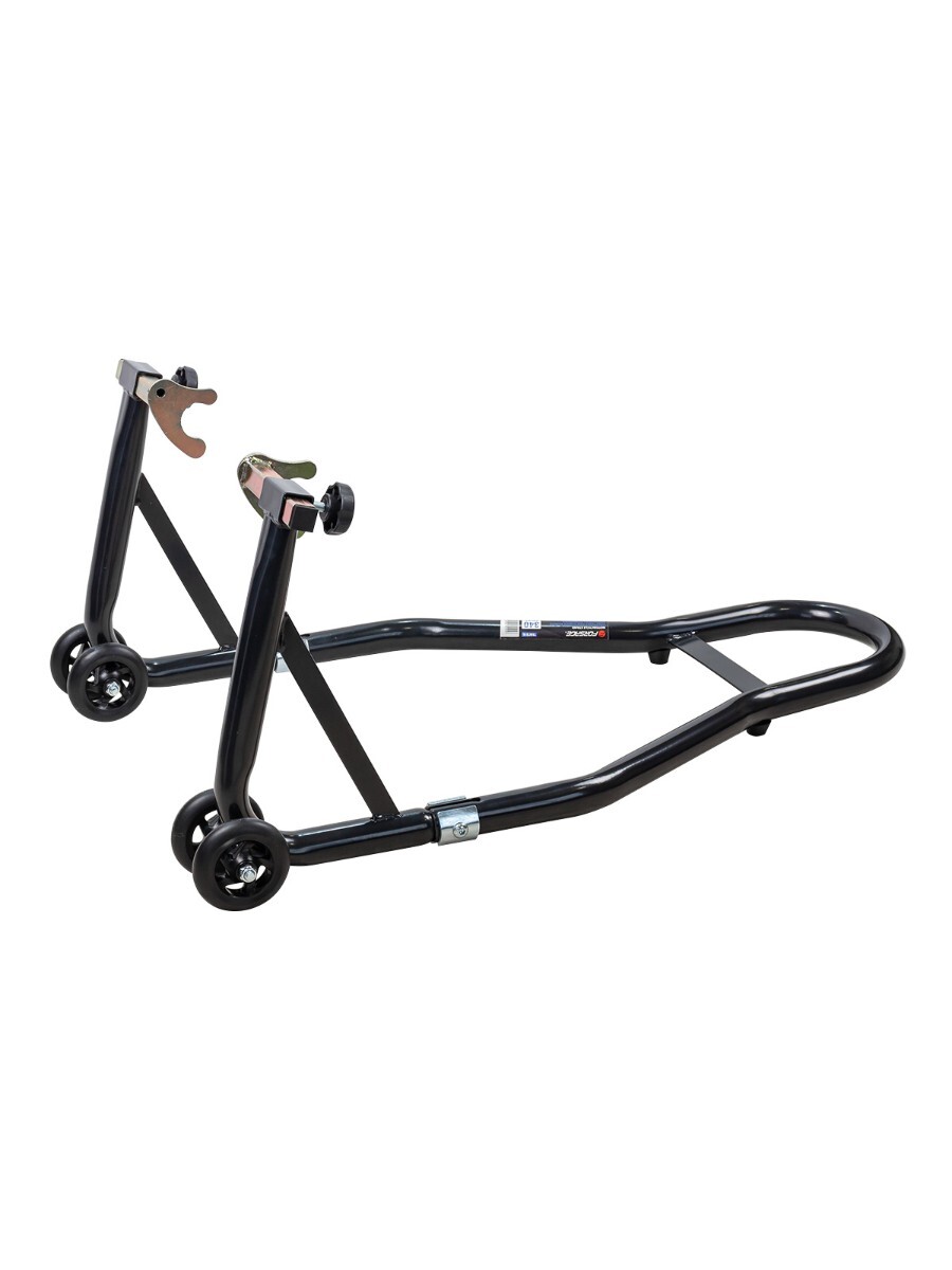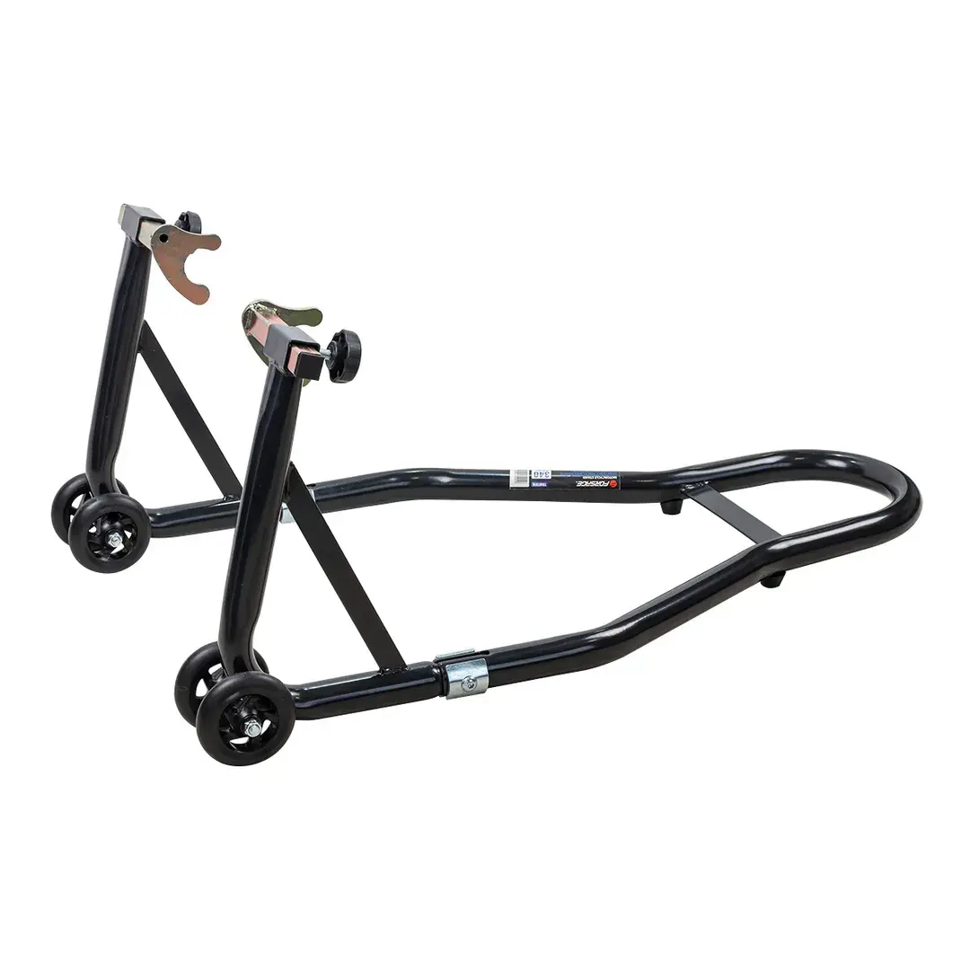 Мотоподставка под заднее колесо мотоцикла подкатная (340 кг.) представляет собой специальное устройство, предназначенное для удержания задней части мотоцикла в вертикальном положении при парковке или хранении. Она легко подкатывается к заднему колесу и фиксируется, обеспечивая устойчивую опору и безопасность при парковке. Подкат способен выдерживать вес до 340 кг., что позволяет использовать ее для большинства типов мотоциклов Данный кронштейн позволяет удерживать мотоцикл в вертикальном положении, предотвращая его падение и повреждения при парковке или хранении.