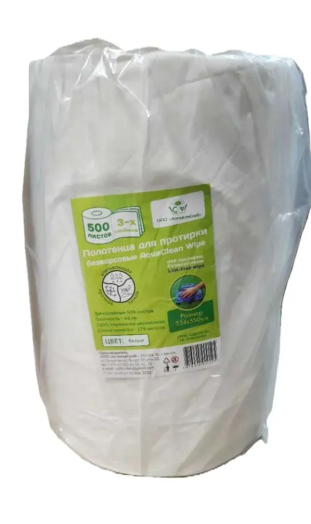 Полотенца для протирки, безворсовые, ПЕРВИЧНАЯ целлюлоза, ТРЕХСЛОЙНЫЕ, БЕЛЫЕ, 334-350мм, 500 листов Прочий