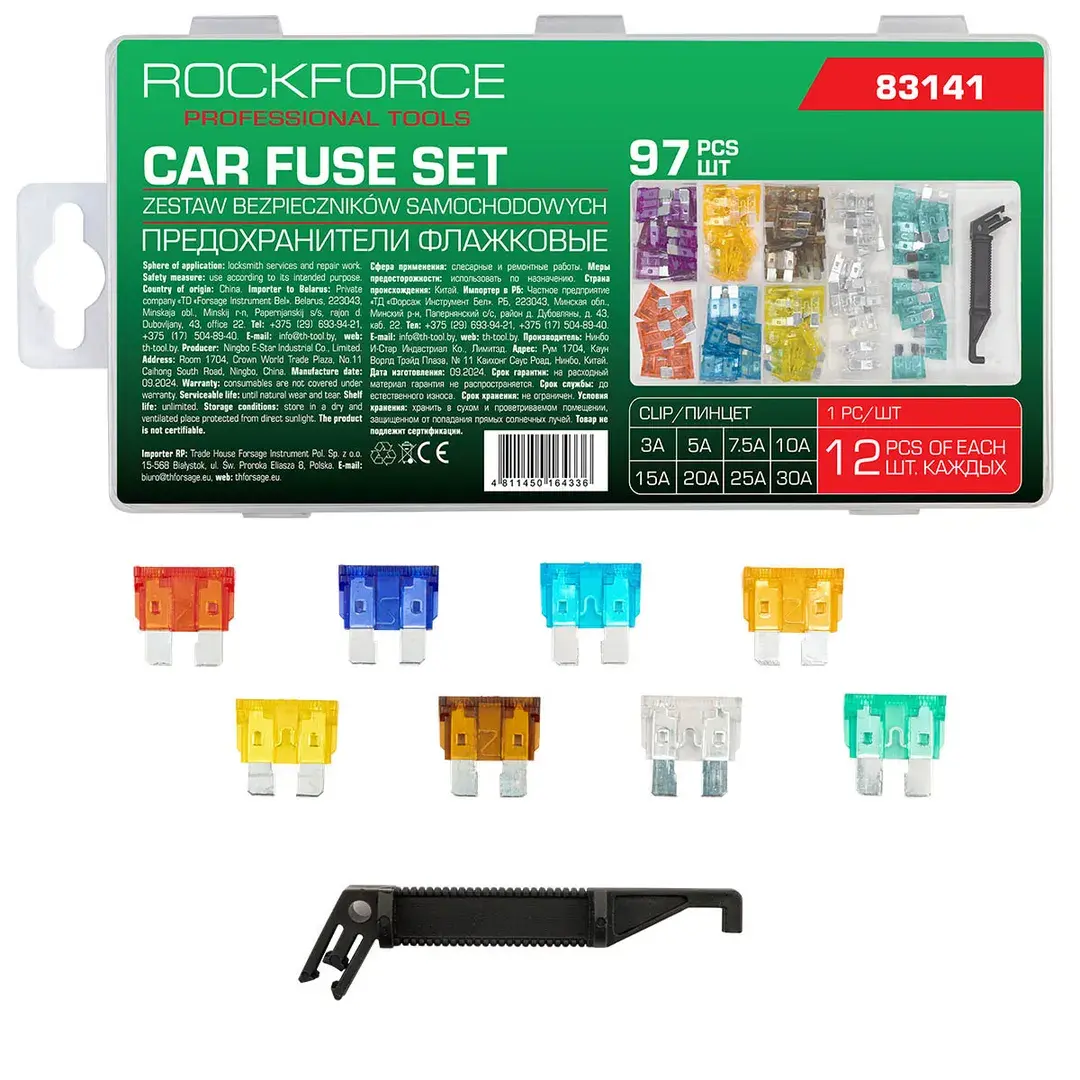 Предохранители плавкие флажковые автомобильные (от 3А до 30А), комплект 97пр. RockFORCE RF-FS-30[83141]