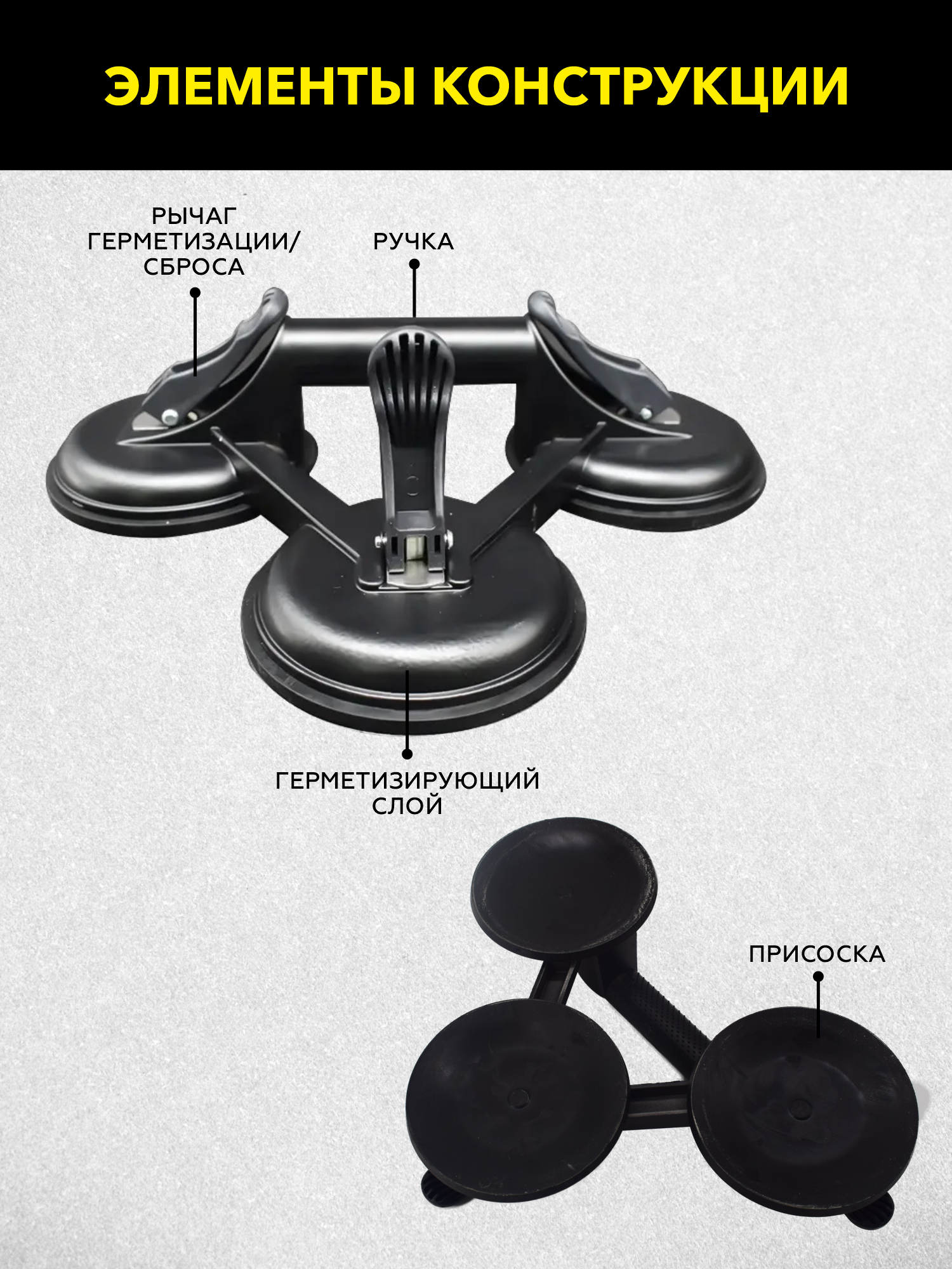 Присоска вакуумная алюминиевая 3 чашки 120 мм TECHNICOM TC-L3110