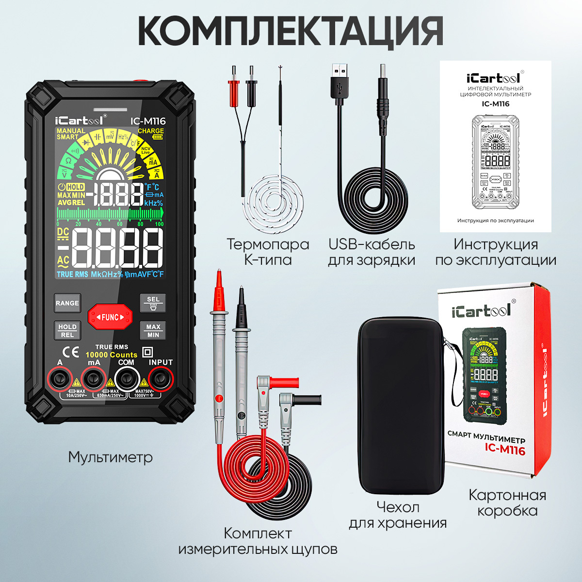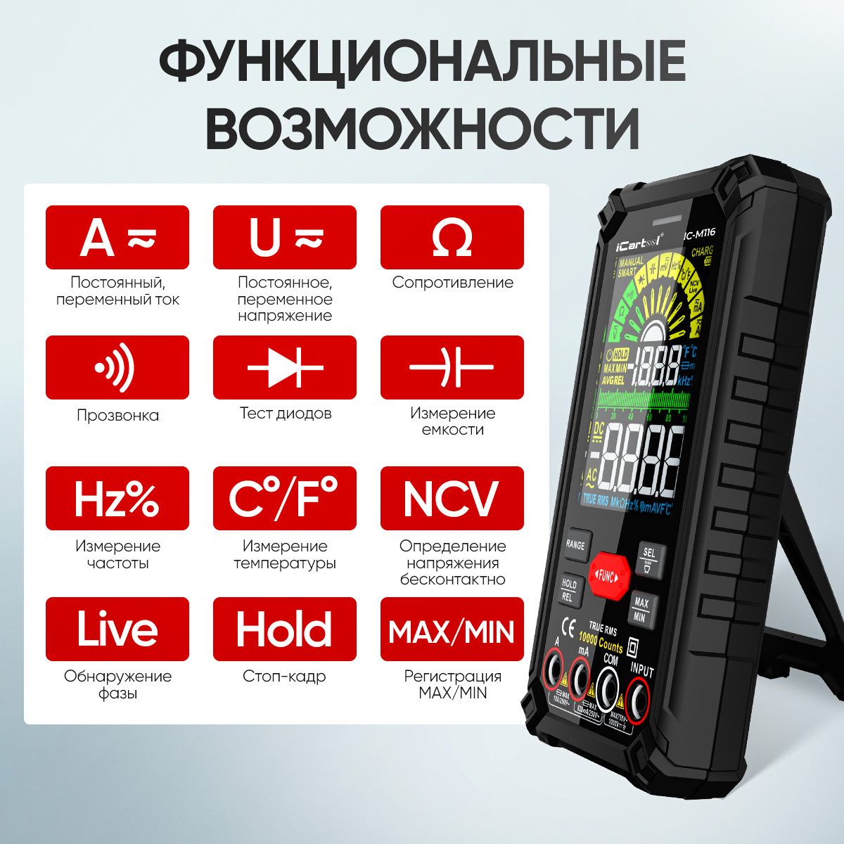 Профессиональный смарт мультиметр цифровой iCartool IC-M116