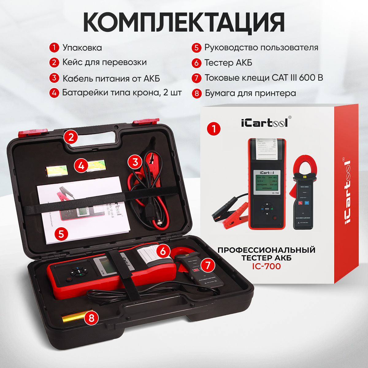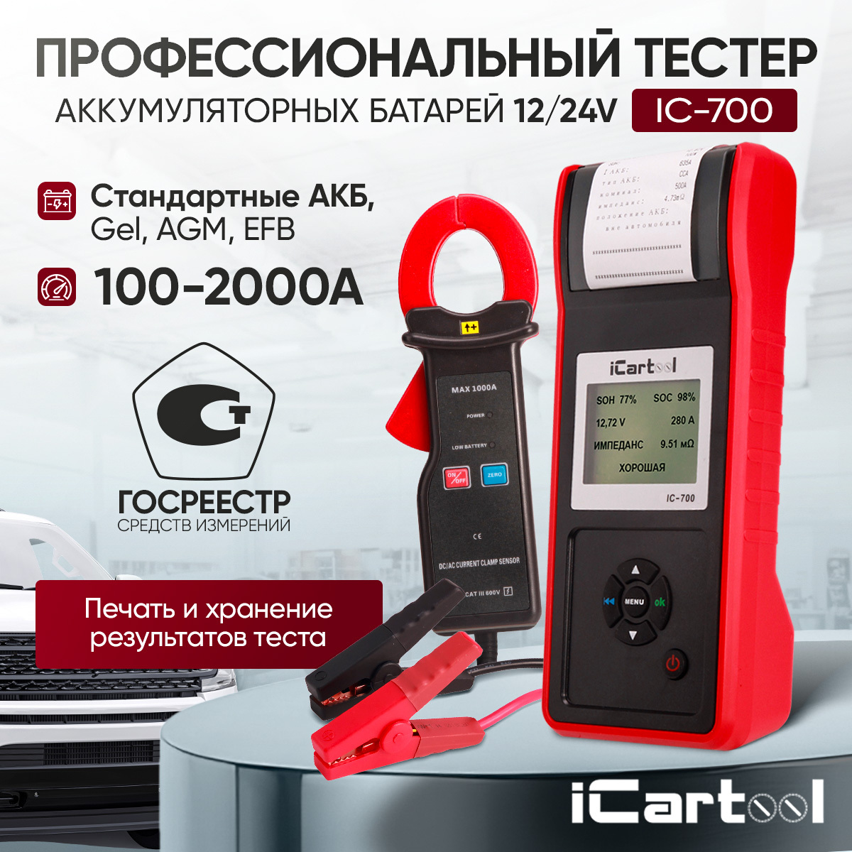 Профессиональный тестер аккумуляторных батарей (АКБ) 12/24V iCartool IC-700