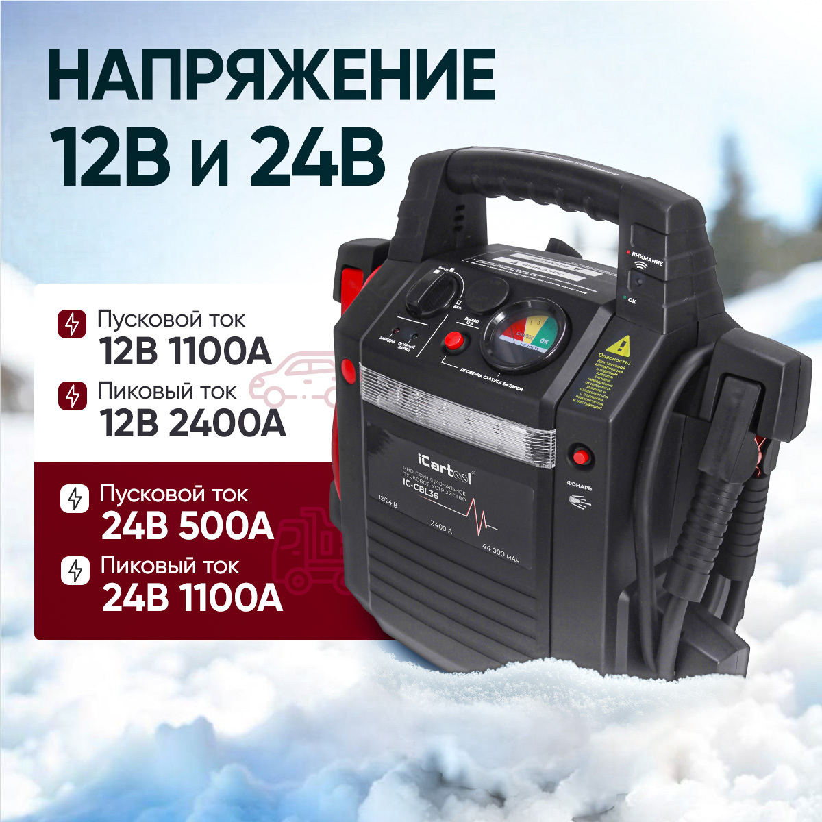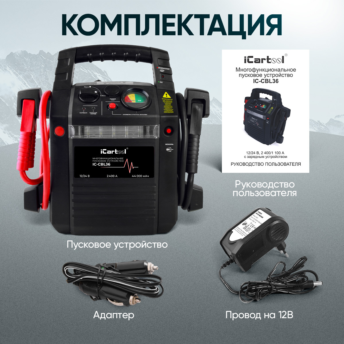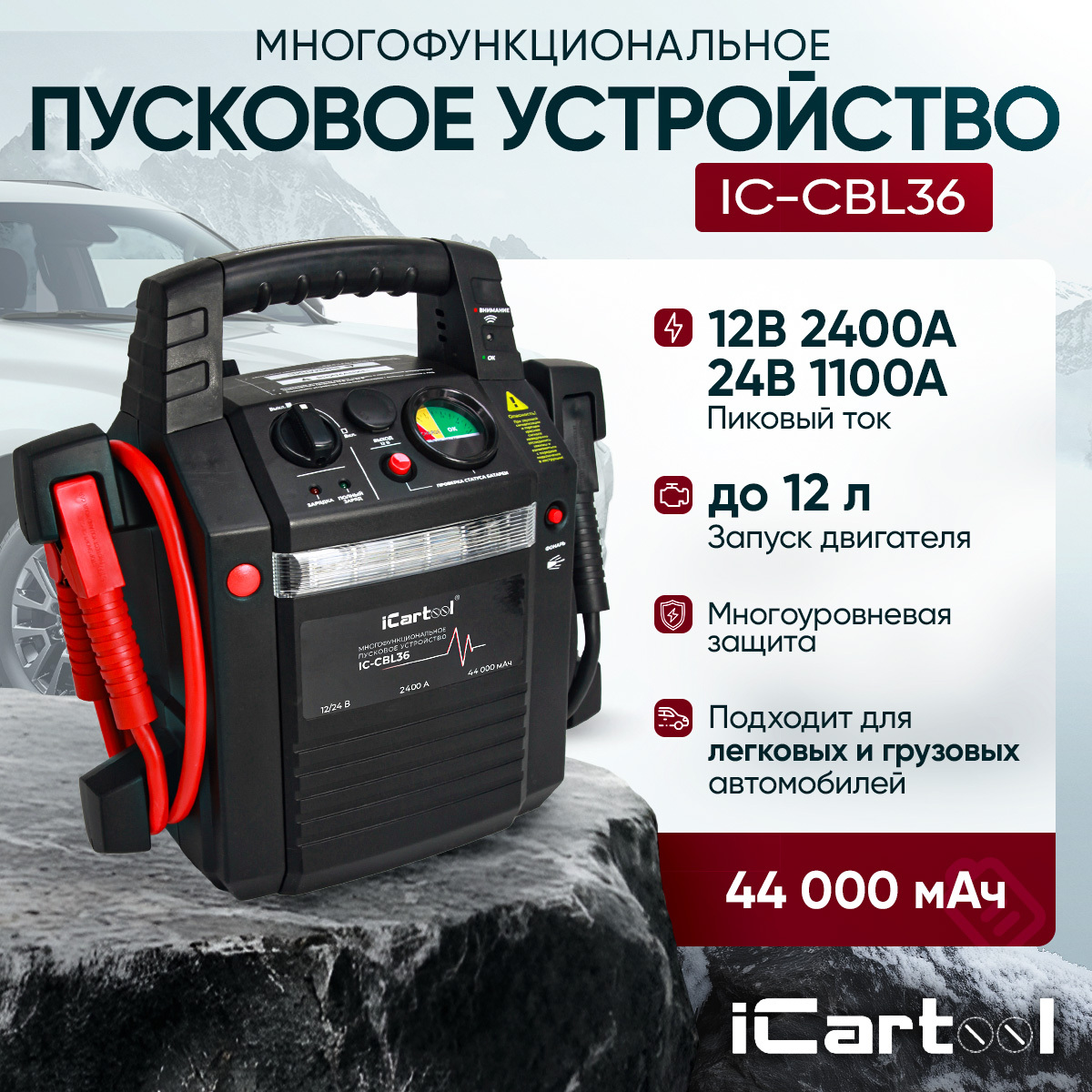 Пусковое устройство 12/24В, 36 000 мАч, мин. 12v1100A/24v500A макс. 12v2200A/24v1100A iCartool IC-CBL36