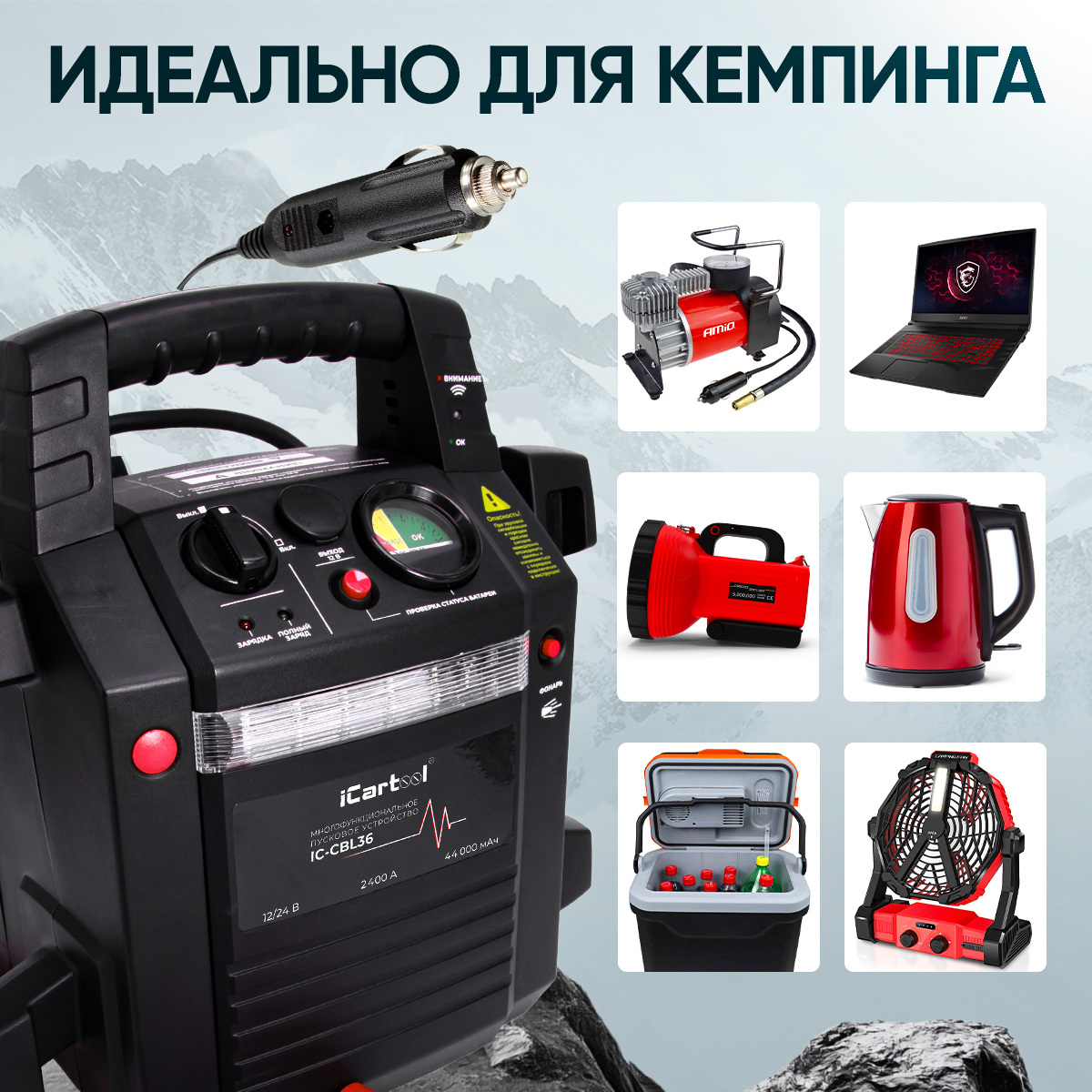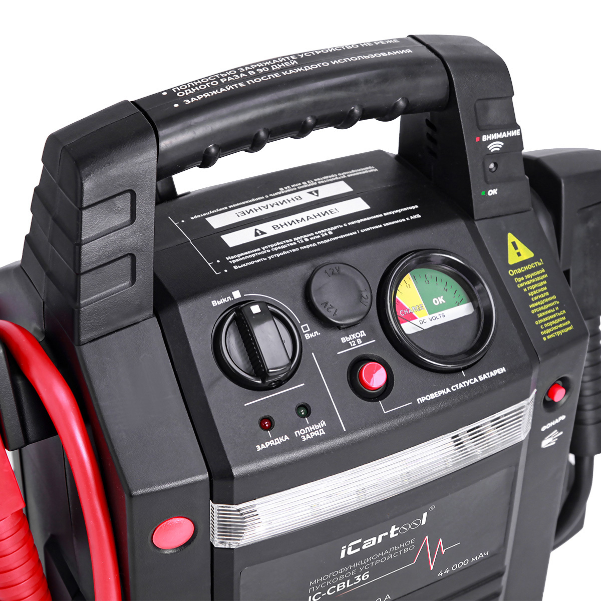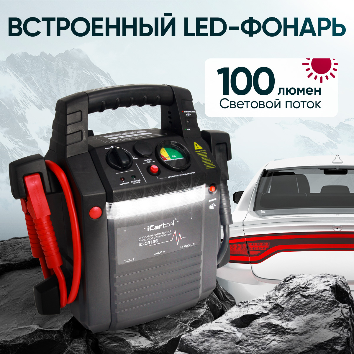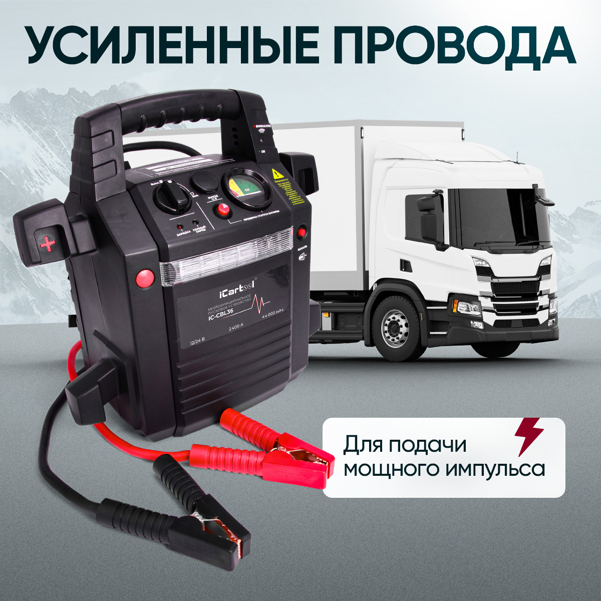 Пусковое устройство 12/24В, 36 000 мАч, мин. 12v1100A/24v500A макс. 12v2200A/24v1100A iCartool IC-CBL36