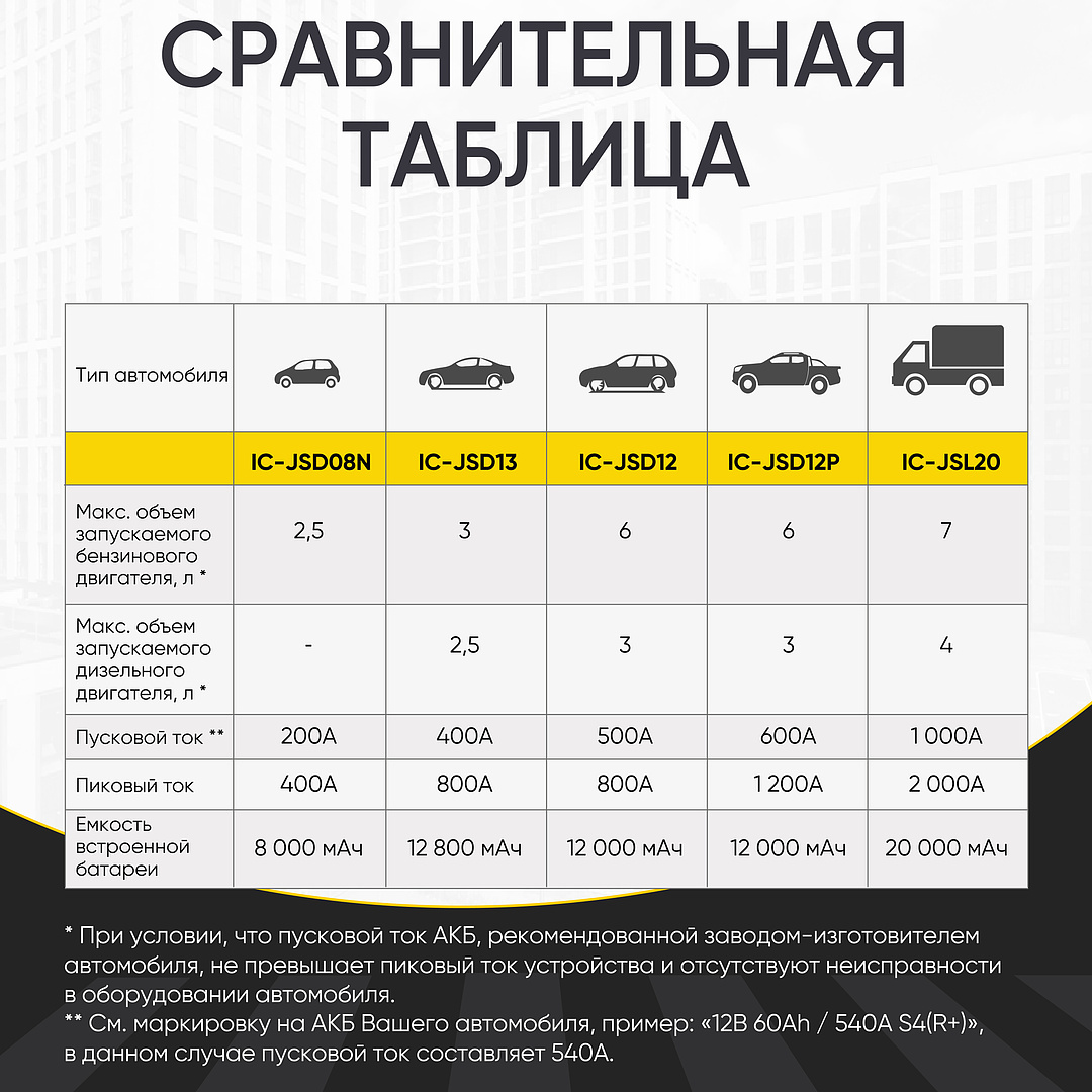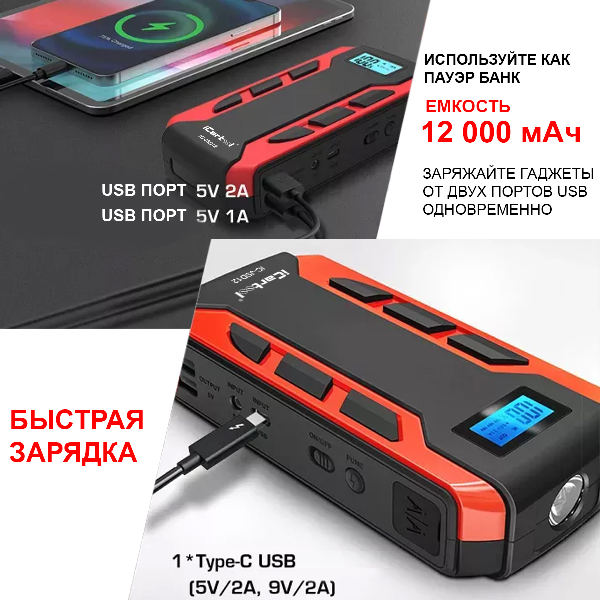 Пусковое устройство 12В, 12 000 мАч, 500/800А iCartool IC-JSD12