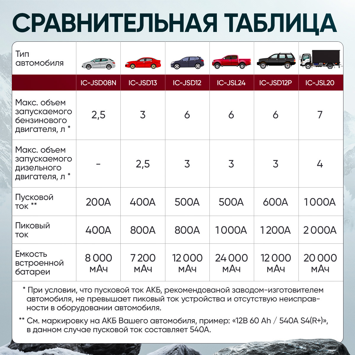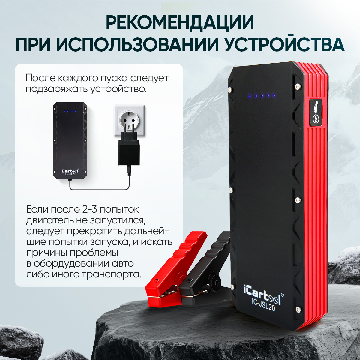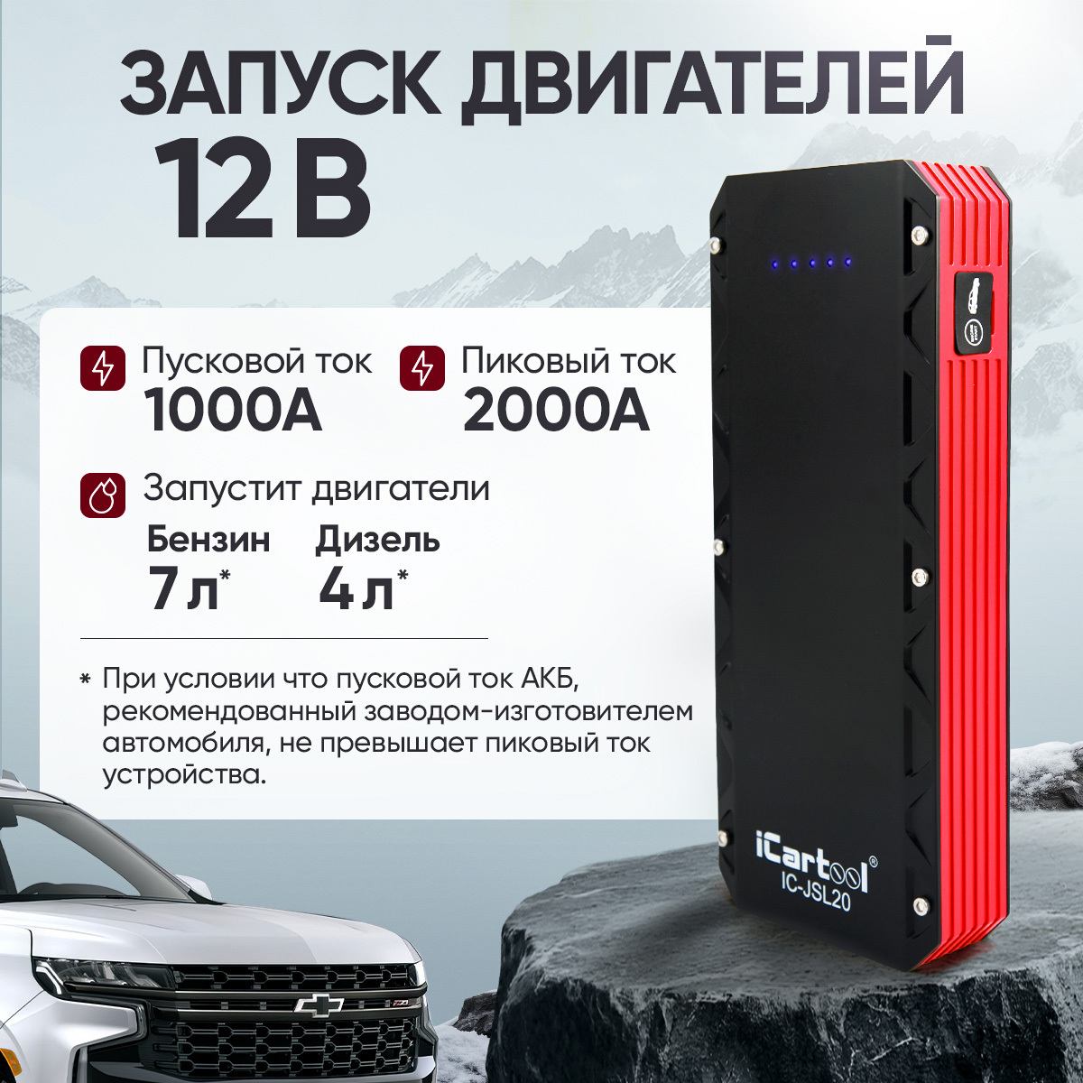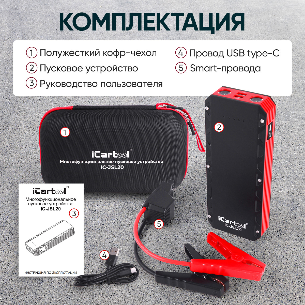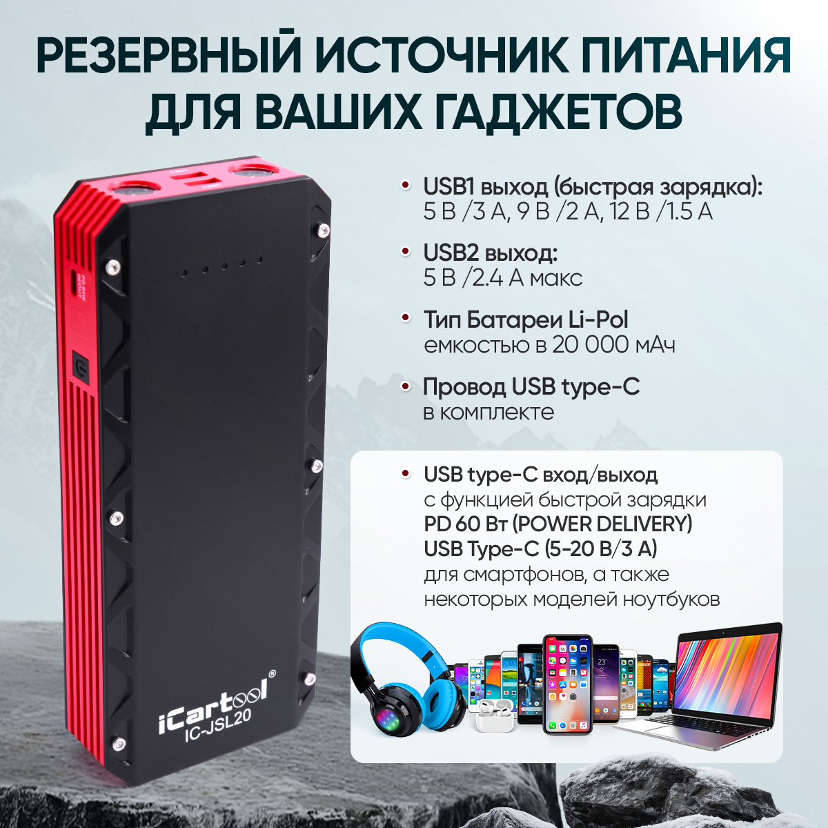Пусковое устройство 12В, 20 000 мАч, 1000/2000А iCartool IC-JSL20