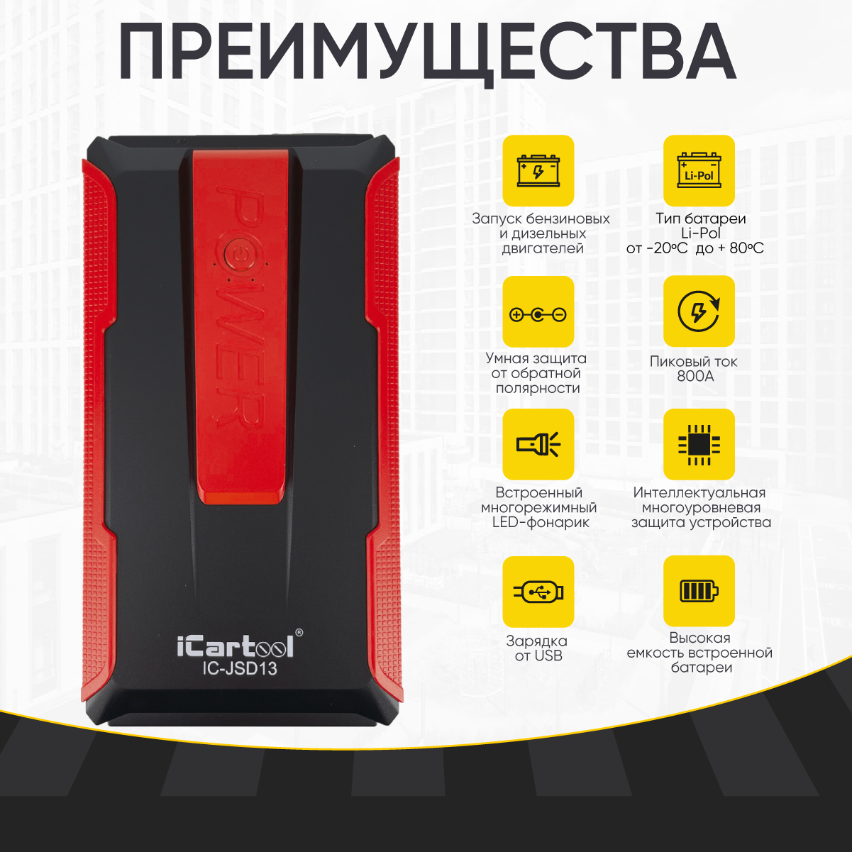 Пусковое устройство 12В, 7 200 мАч, 400/800А iCartool IC-JSD13