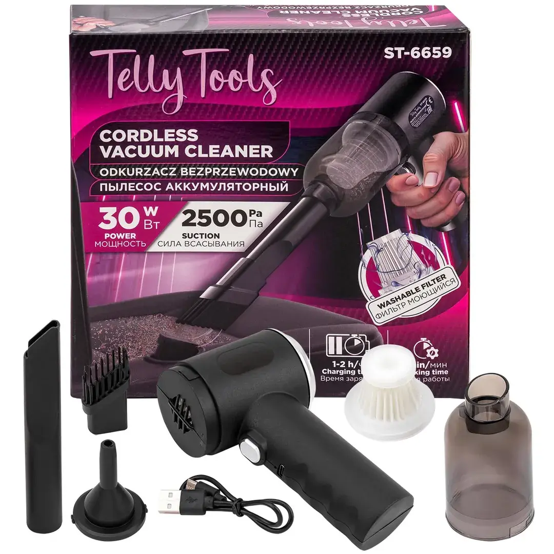 Пылесос портативный аккумуляторный (3,7В,1200мА/ч) 30Вт, контейнер 0,45л TELLY TOOLS TL-ST-6659