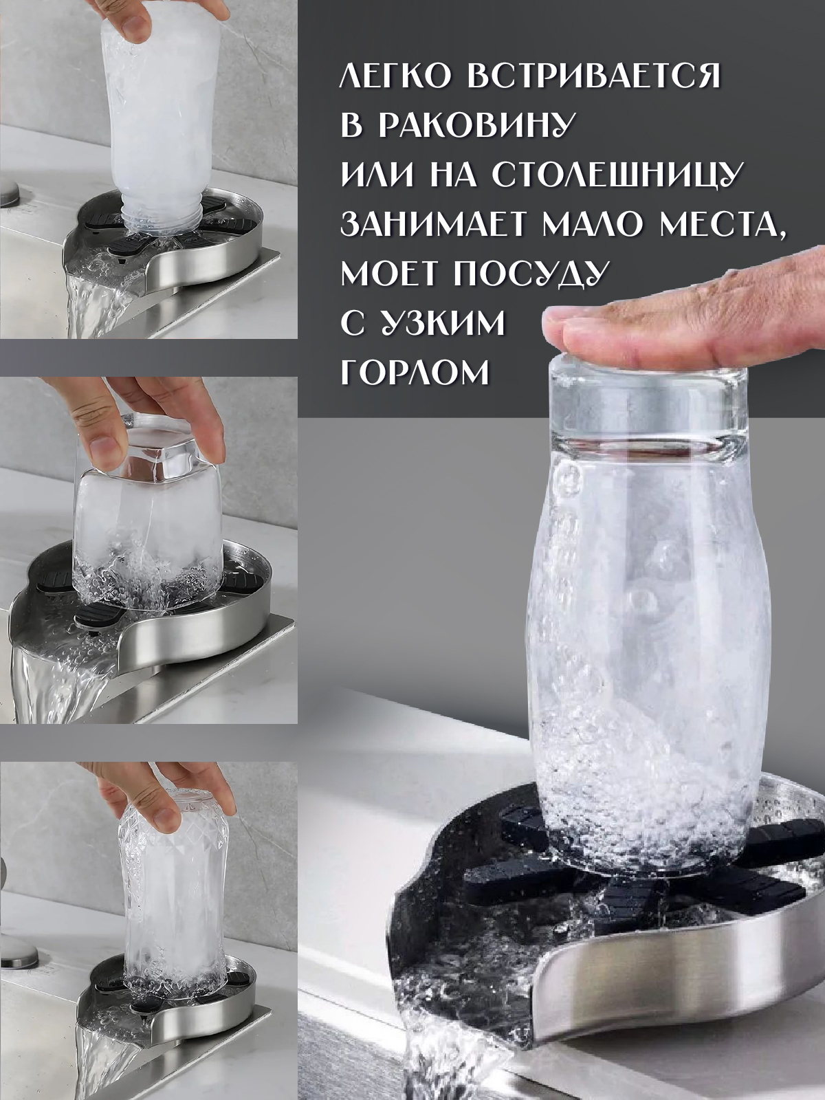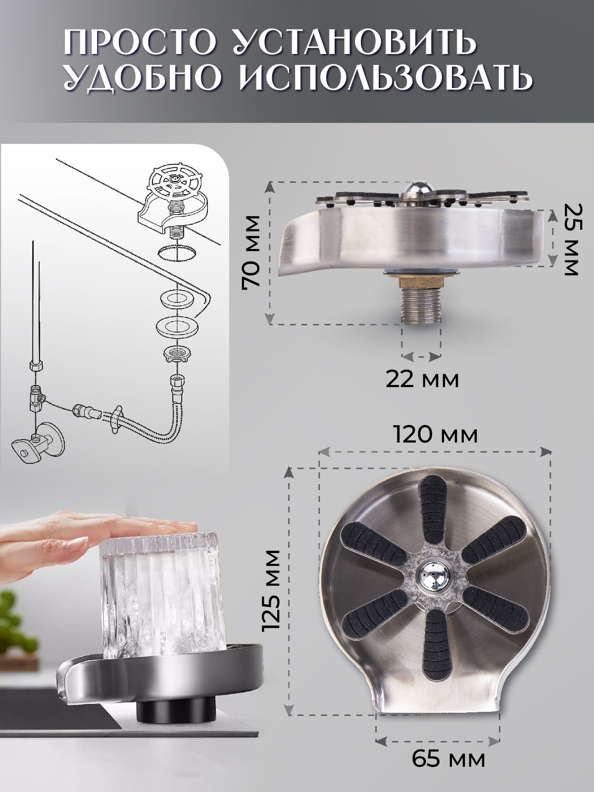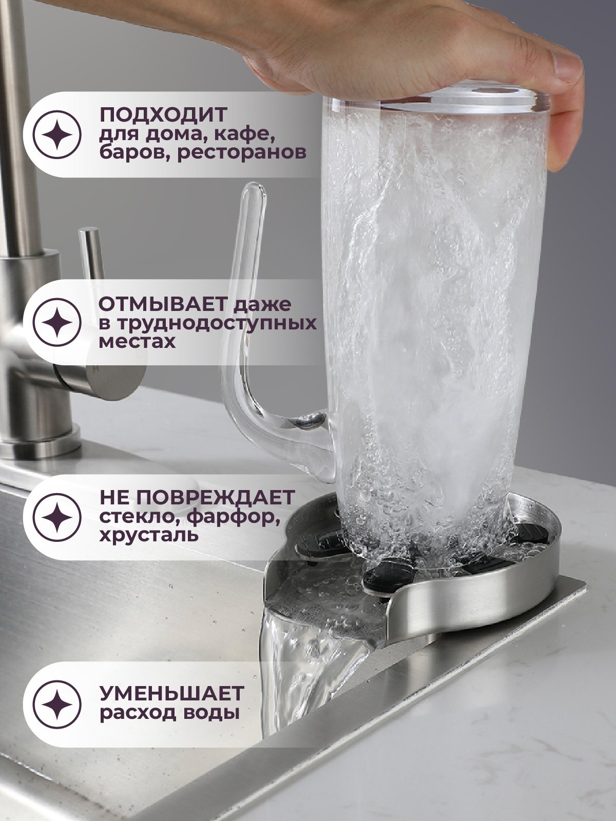 Предназначен для ополаскивания кружек, стаканов, бокалов и т.д. Механизм устроен таким образом, что под сильным напором холодной воды посуда не только тщательно промывается, но быстро охлаждается для дальнейшего использования