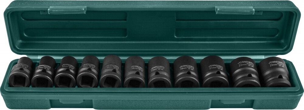 Содержание: - 1/2"DR: Головки торцевые ударные, 11 шт.: 10, 11, 12, 13, 14, 16, 17, 19, 21, 22, 24 мм.; - Пластиковый кейс.