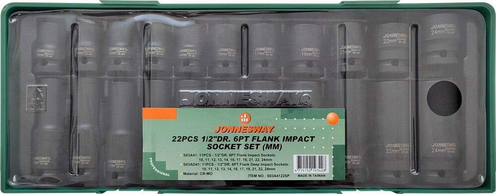 Набор головок ударных 1/2"DR в ложементе, 10-24 мм, 22 предмета Область применения Применяются для проведения слесарно-монтажных работ с механическим приводом ударного действия высоконагруженными или осложненными резьбовыми соединениями. Устойчивы к высоким динамическим нагрузкам.