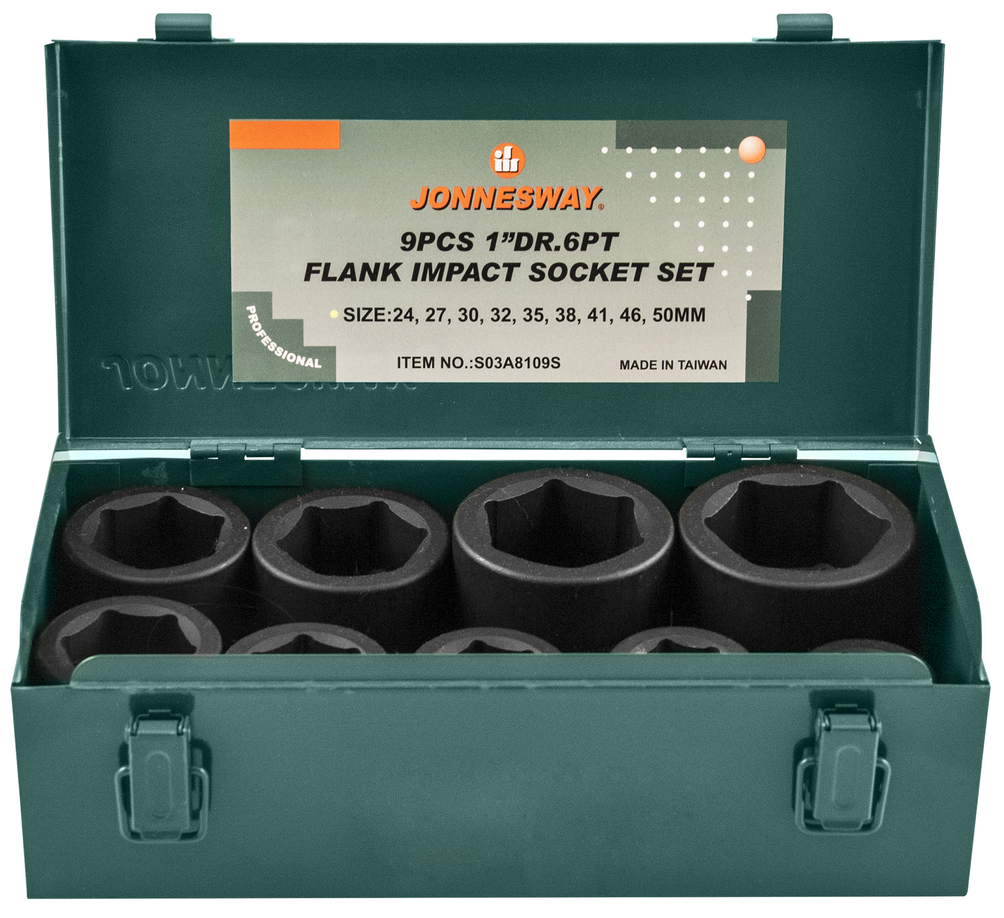 Содержание: - 1"DR: Головки торцевые ударные, 9 шт.: 24, 27, 30, 32, 35, 38, 41, 46, 50 мм.; - Металлический кейс.