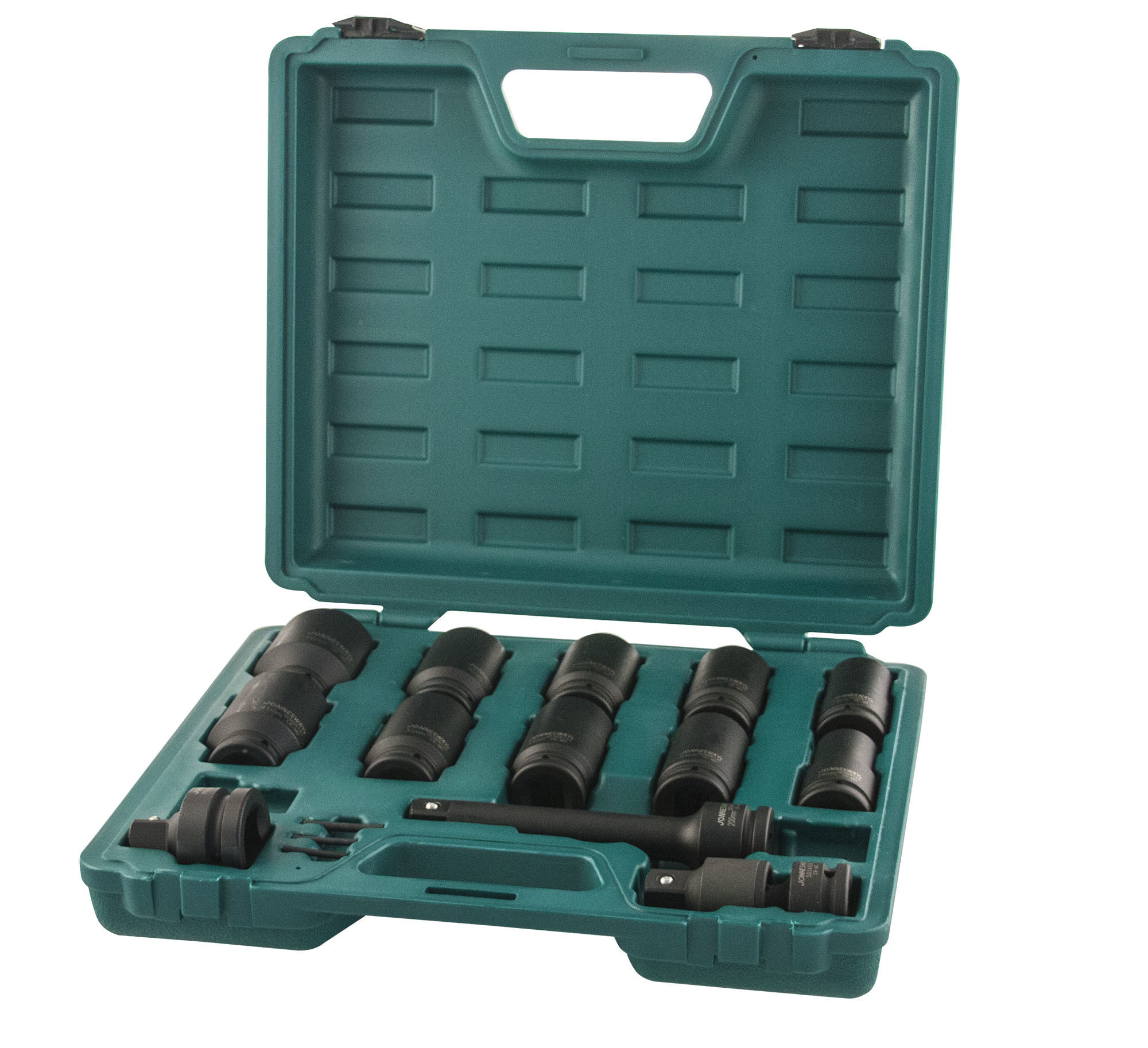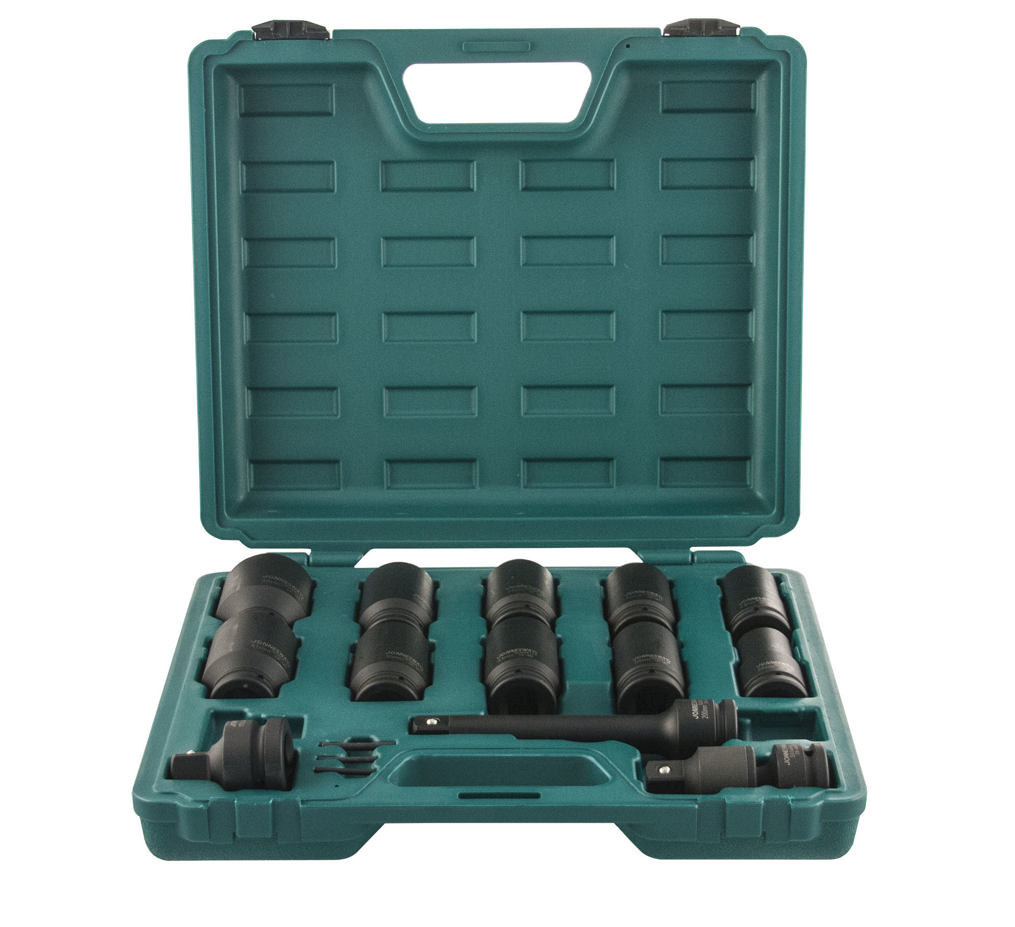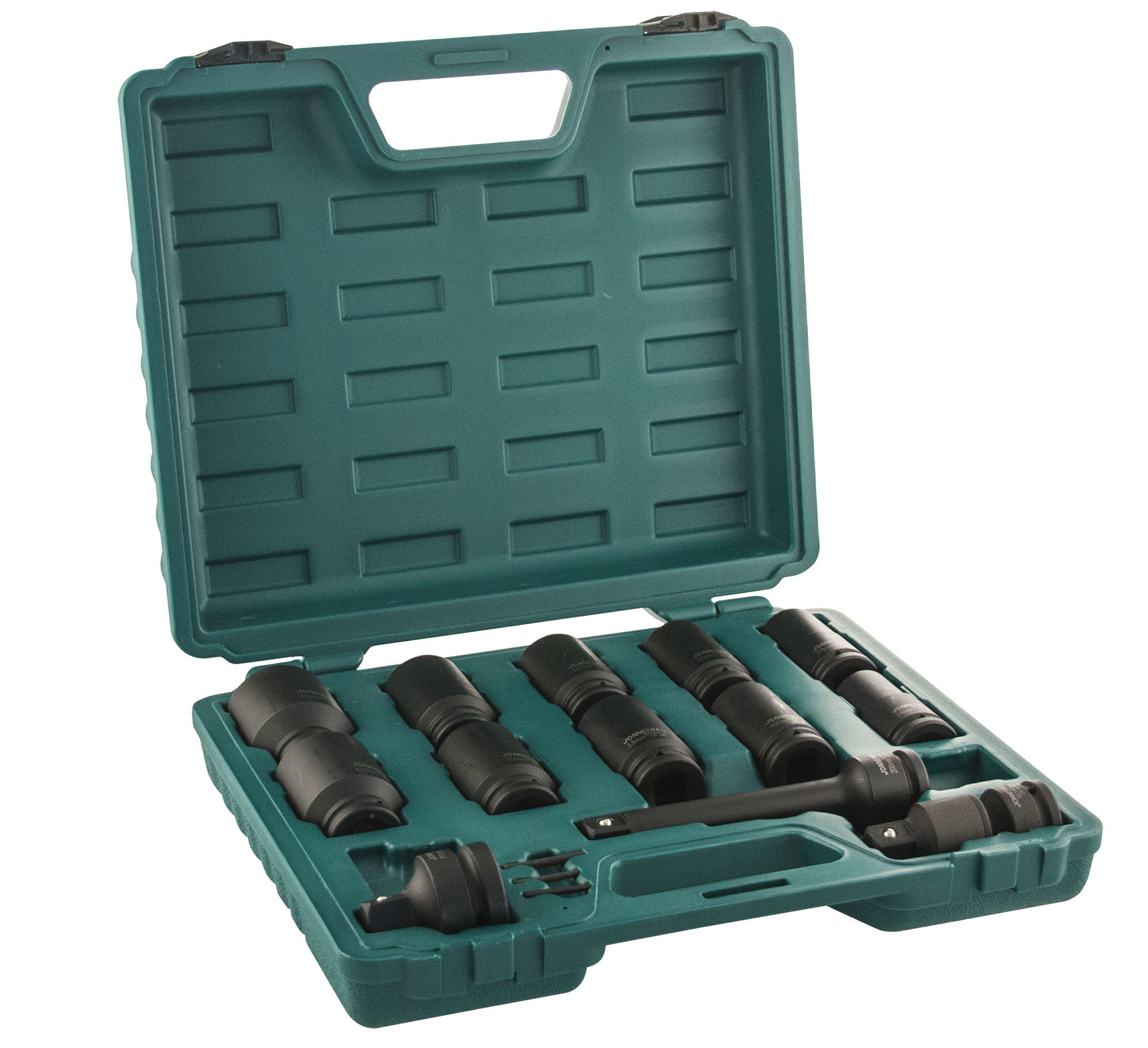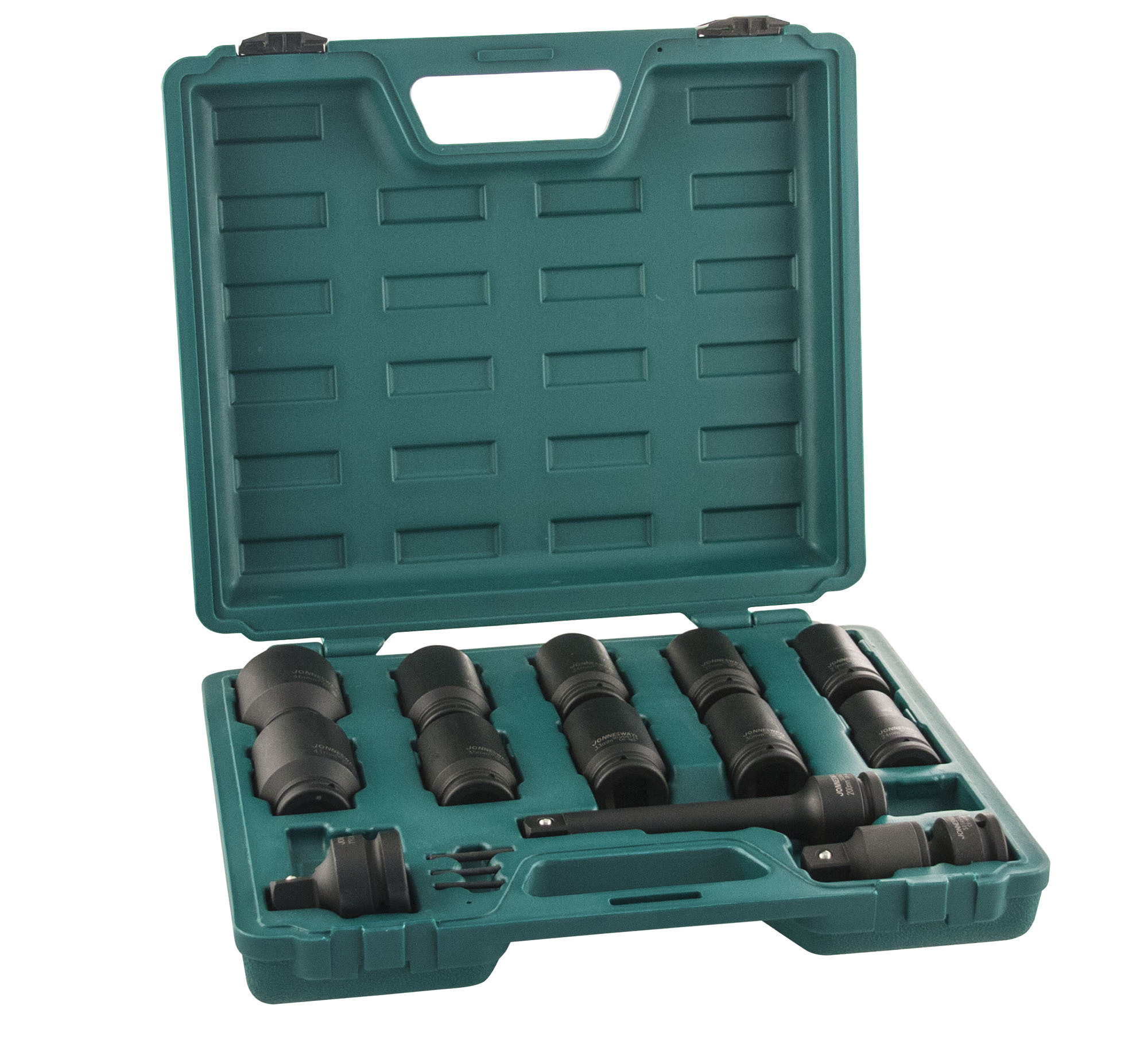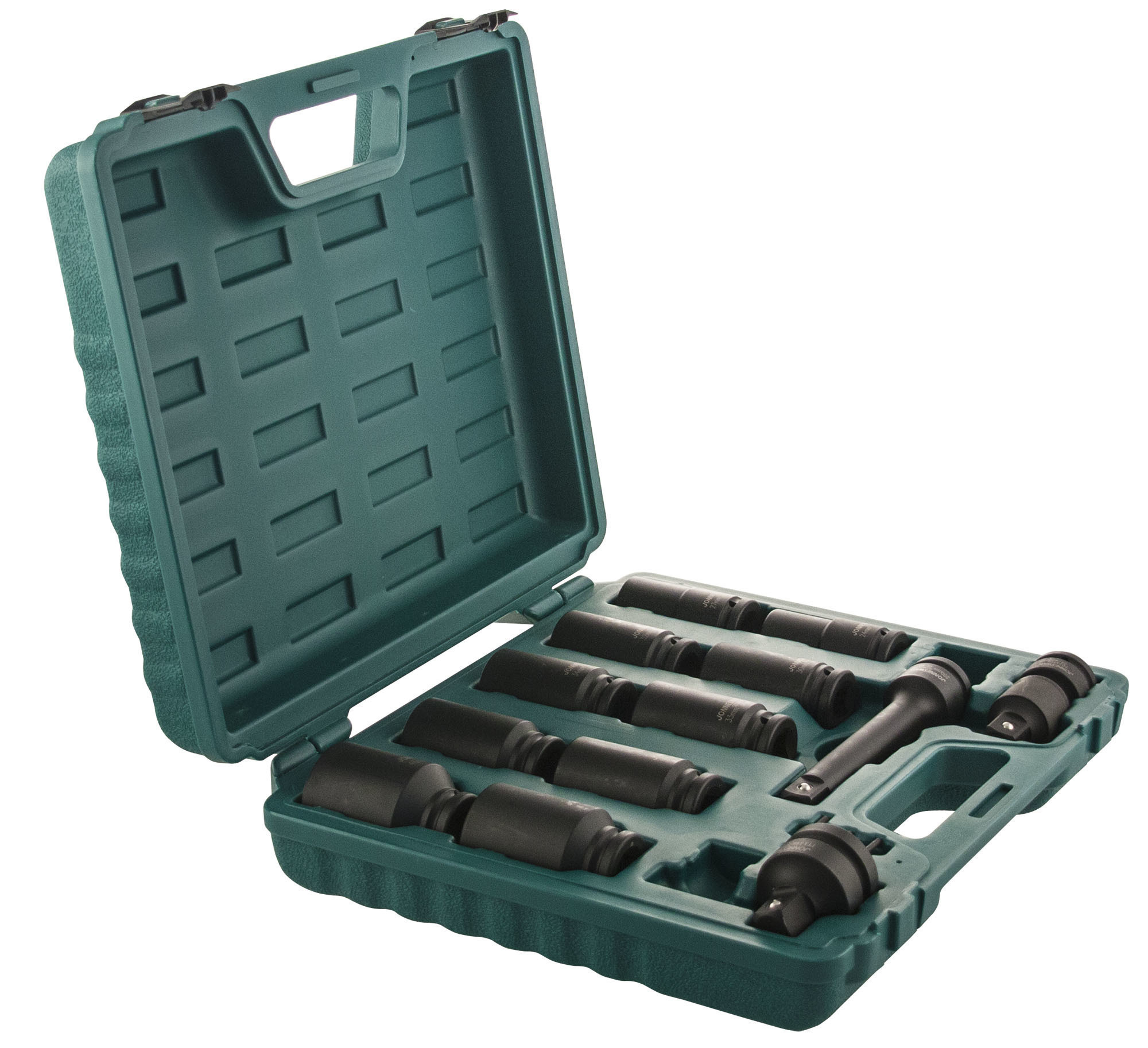Содержание: 3/4''DR: Головки торцевые ударные глубокие 10 шт.: 24, 27, 30, 32, 33, 34, 35, 36, 41, 46 мм.; Удлинитель 200 мм.; Шарнир карданный 1 шт.; Адаптеры 2 шт.: 1''DR х 3/4''DR и 1/2''DR х 3/4''DR; Кольца 3 шт.; Штифты 3 шт.; Пластиковый кейс.